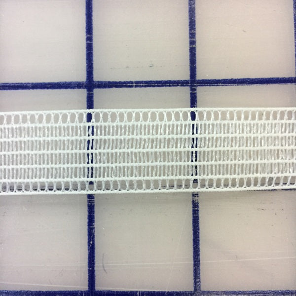 Priced per yard. White invisible mesh elastic. 7/8-inch wide. Dyes well.