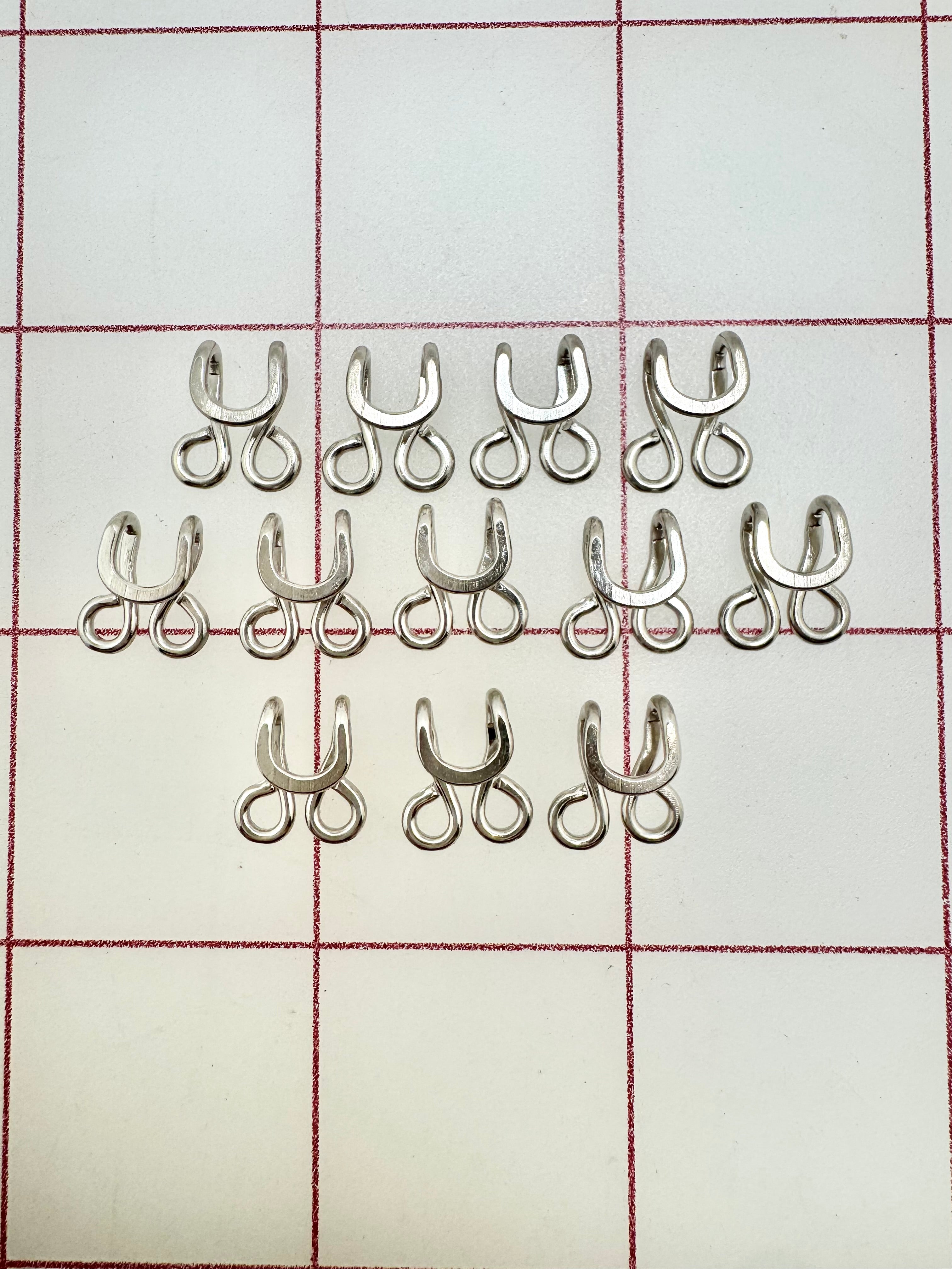 Priced per dozen (1 Dz = 12 pieces). Silver. #7 hooks. Commonly used to secure corsets, ballet tutu waists, opera and theatrical costumes.