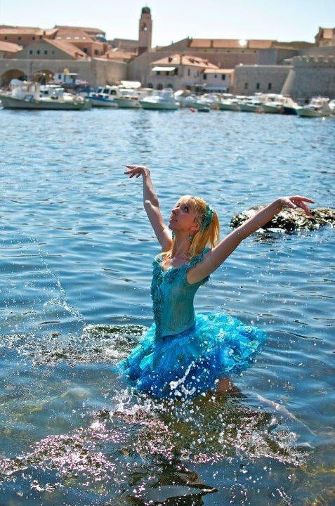 Course Description: Learn how to craft a classical tutu with tiered upper layers. Great for a Spanish style look, but also works well for a foamy, ocean-style (see second and third pictures). Top layer is organza; the rest of the tutu is tutu net.