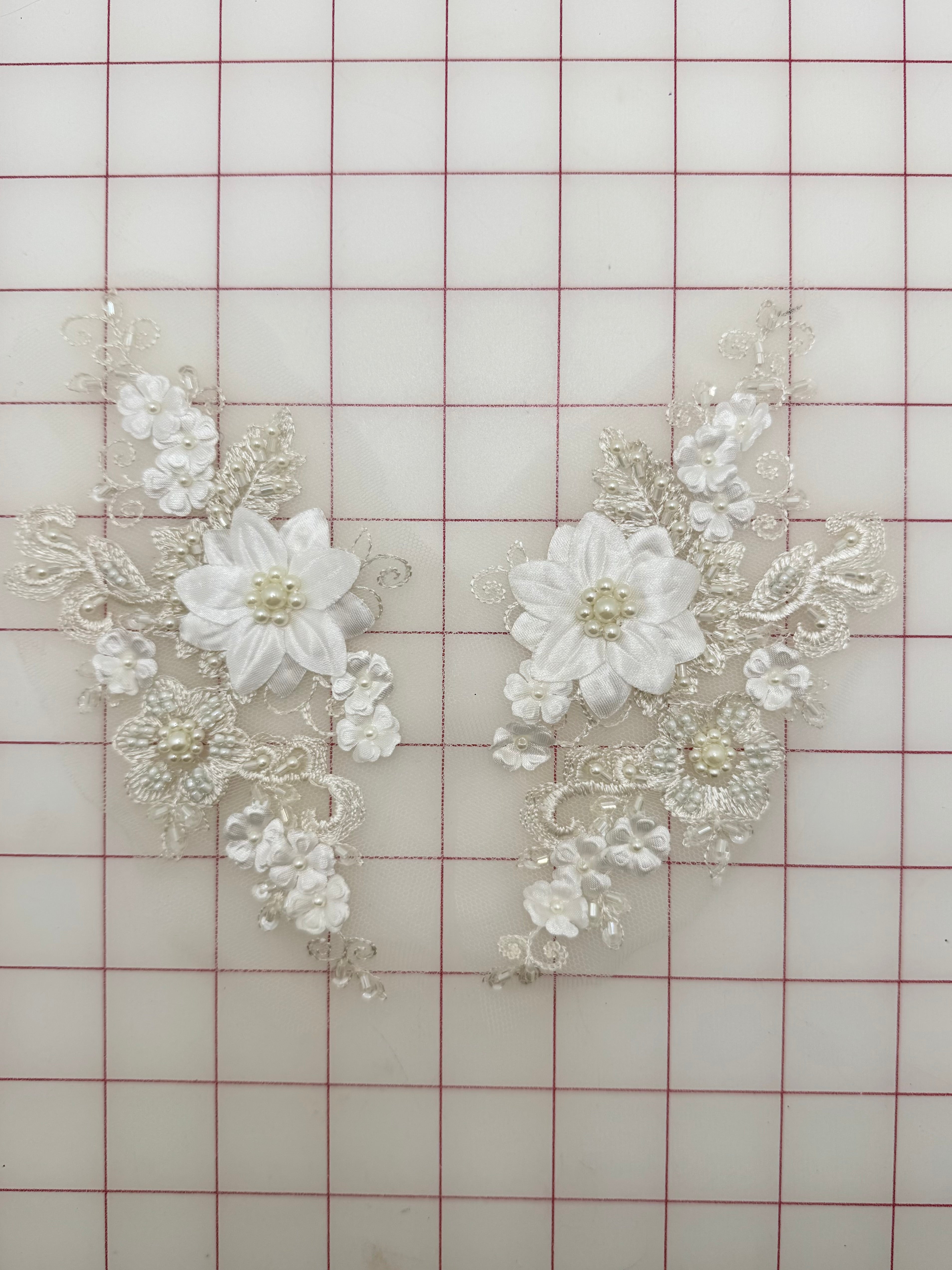 Priced per pair. Stunning, ivory, beaded, embroidered lace pairs.