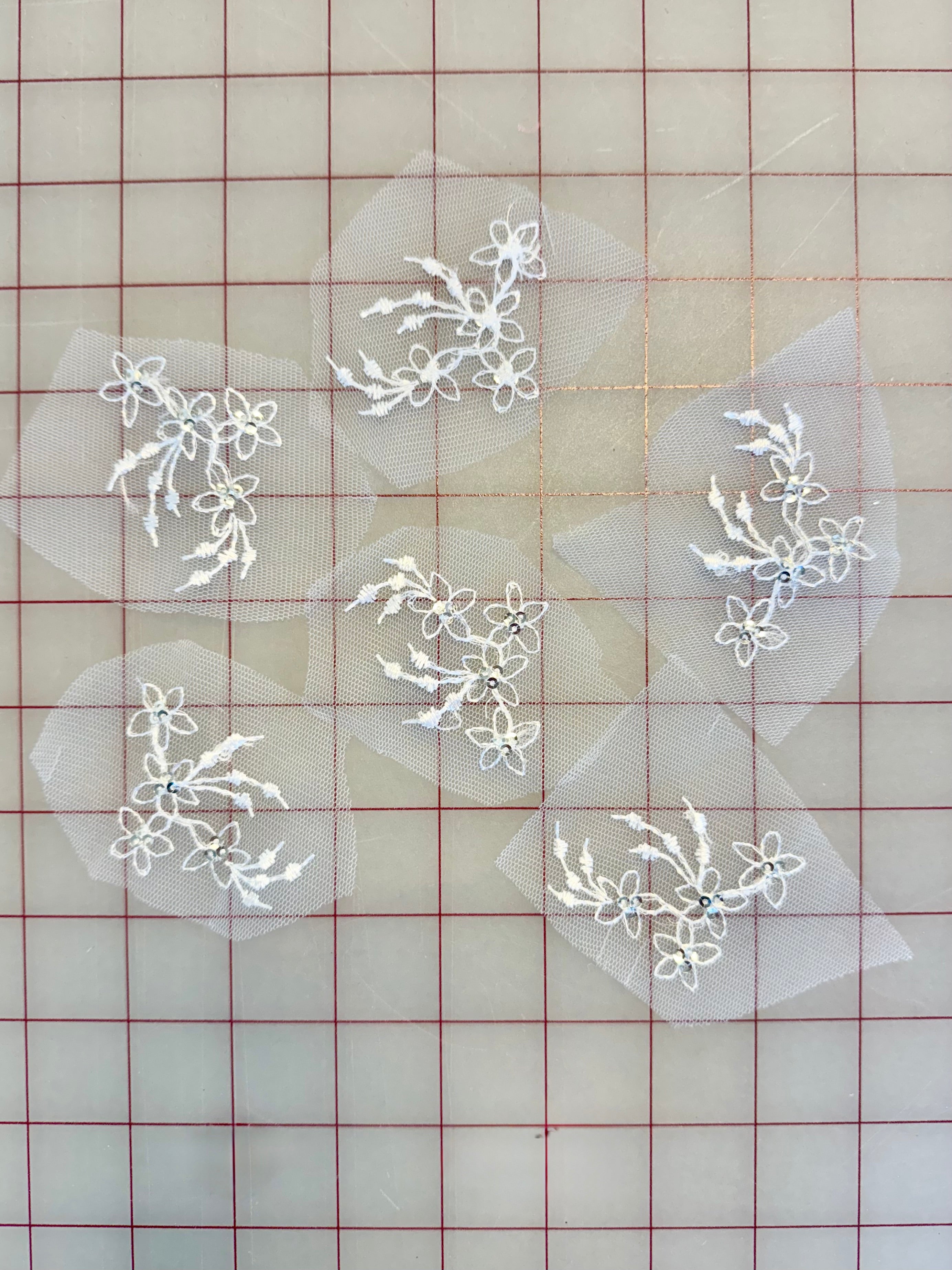 Priced per 6-pack. Delicate, silver-sequined white motifs. Lightweight. Perfect for a Snow Queen tutu embellishment, Sleeping Beauty Wedding tutu, and many other costumes.