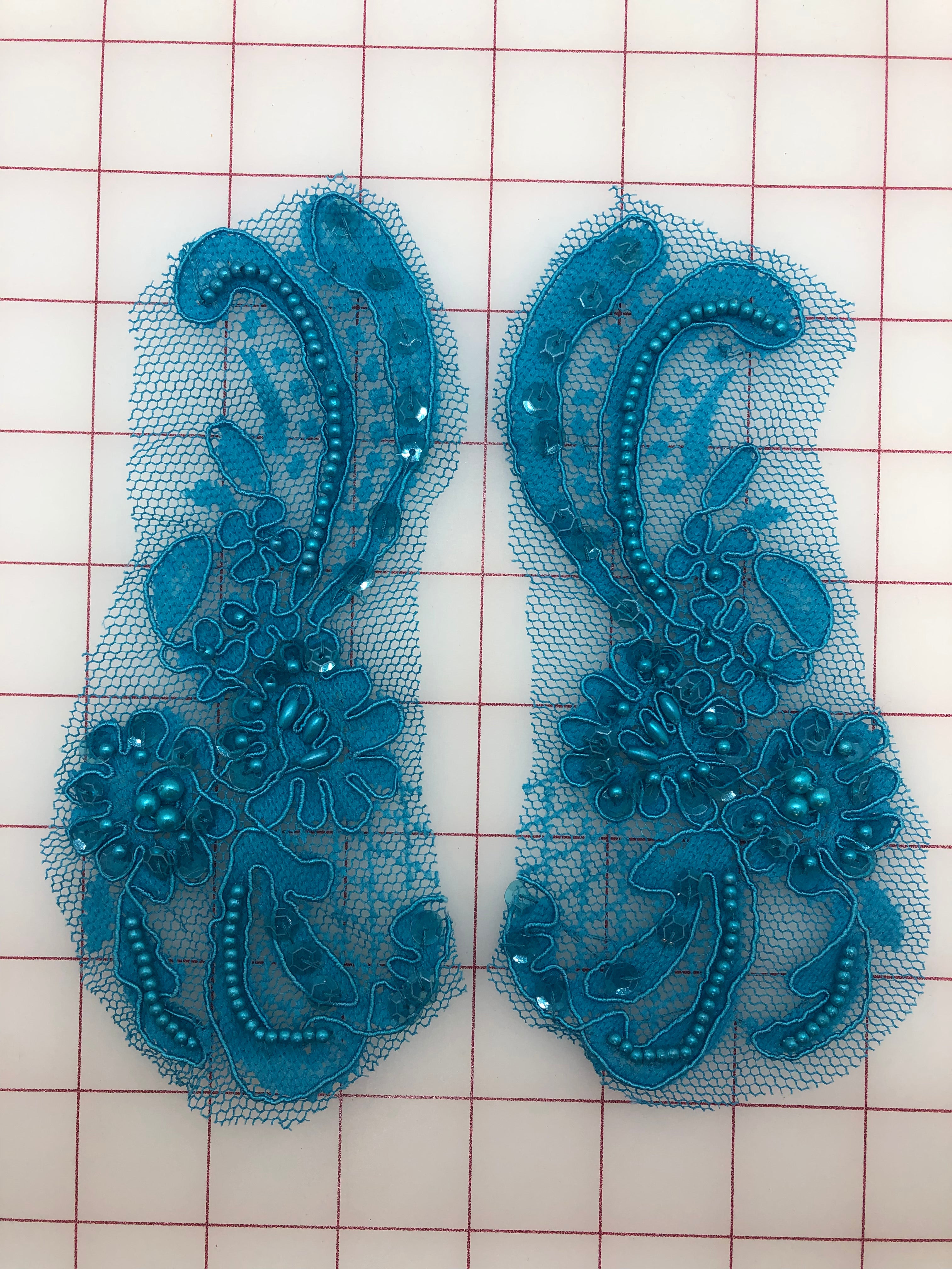 Priced per pair. Beautiful beaded and sequined lace motif pairs.