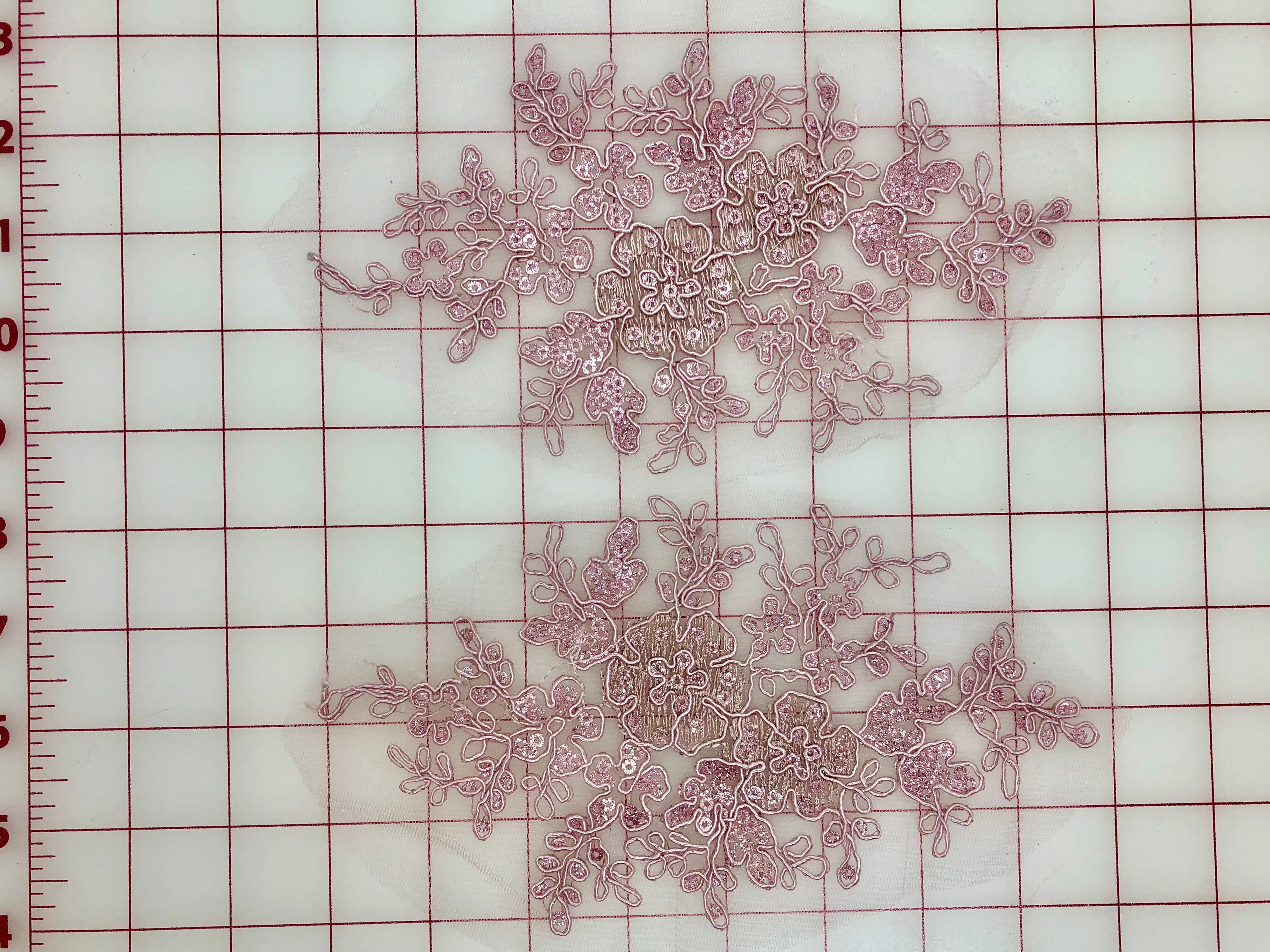Priced per pair. Beaded lace flower and leaf design motif pairs. Dusty Rose. Lightweight.