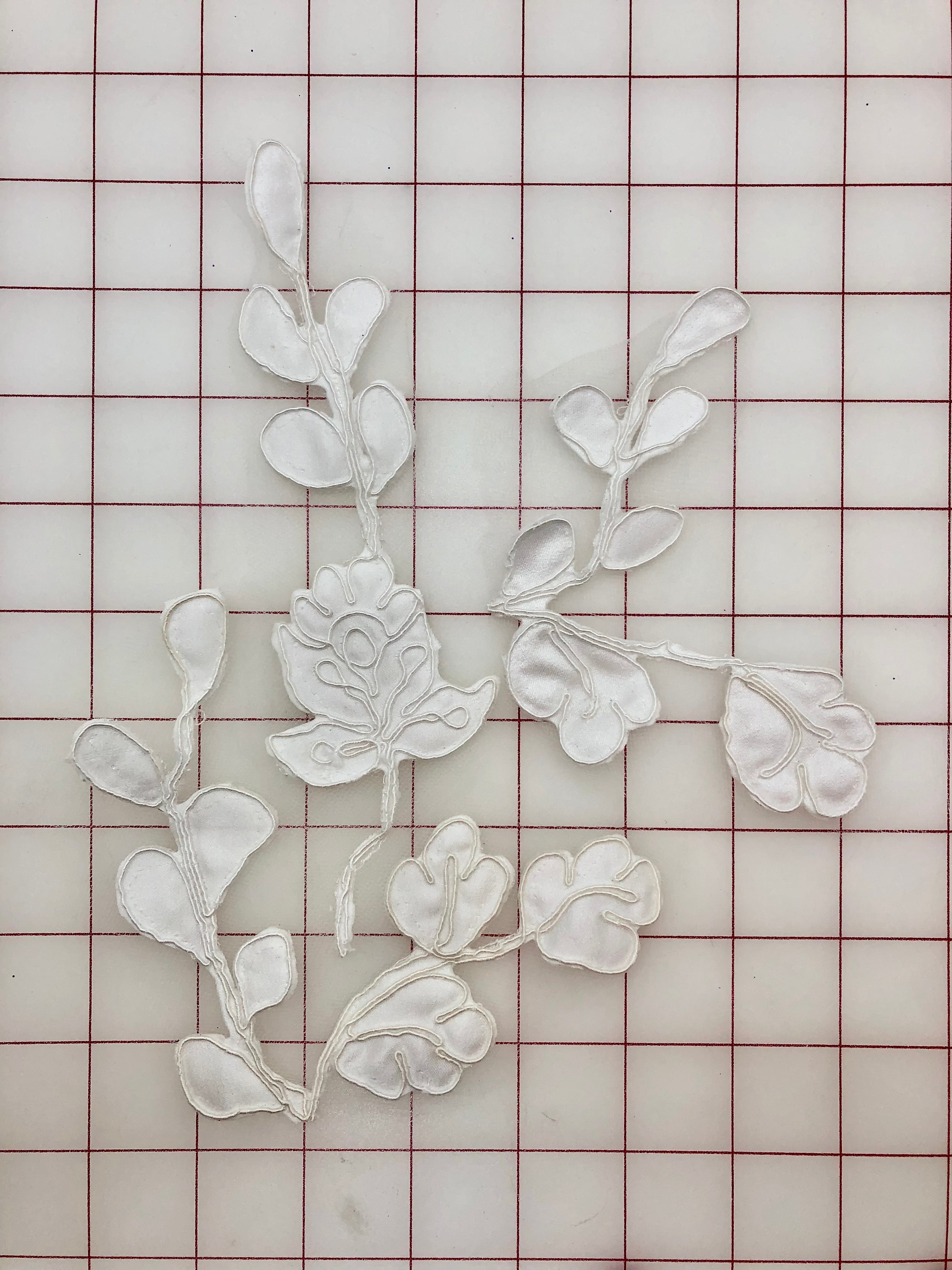 Priced per 3-piece pack. Beautiful, flower and vine design, white, dyeable, corded appliques. Can be easily cut into many smaller motifs. Also easy to shade with fabric markers.