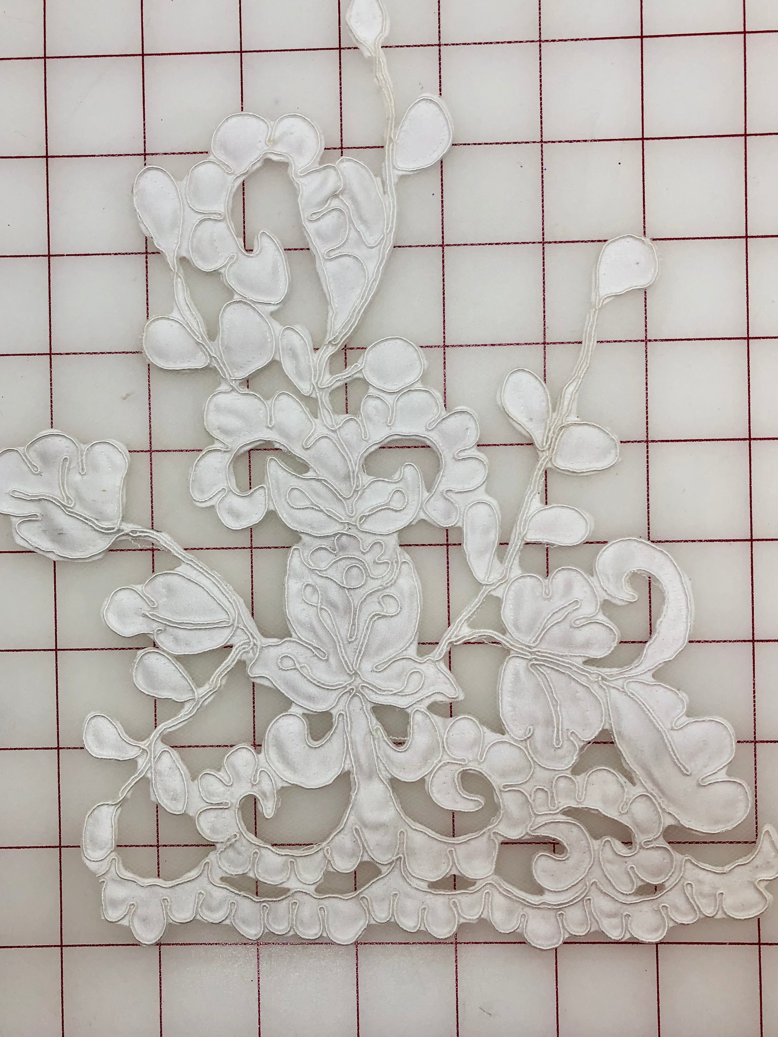 Priced per piece. White, dyeable applique. Can be easily cut into smaller motifs. Also easy to shade with fabric markers.