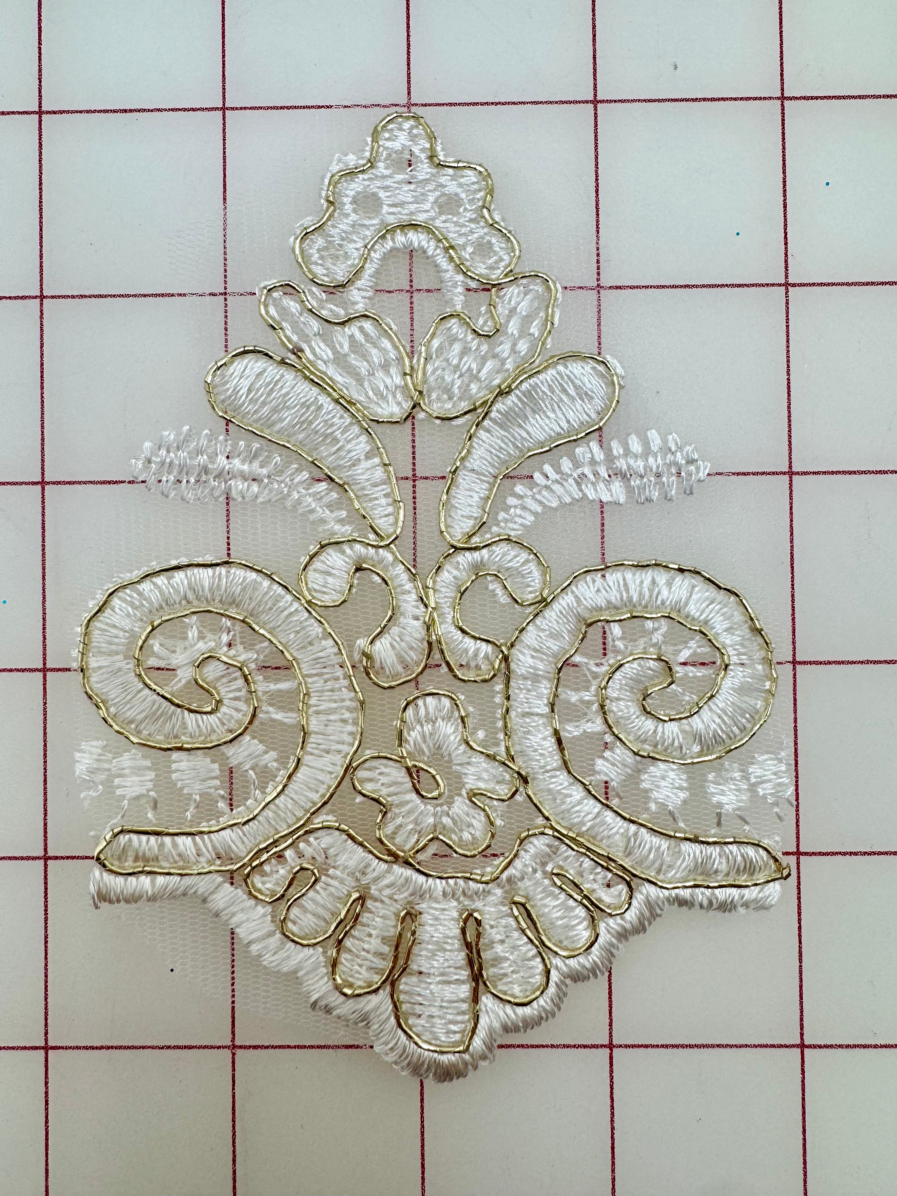 Priced per piece. This stunning, ivory, gold-corded applique is a lightweight applique, perfect for embellishing. classical tutu plates.
