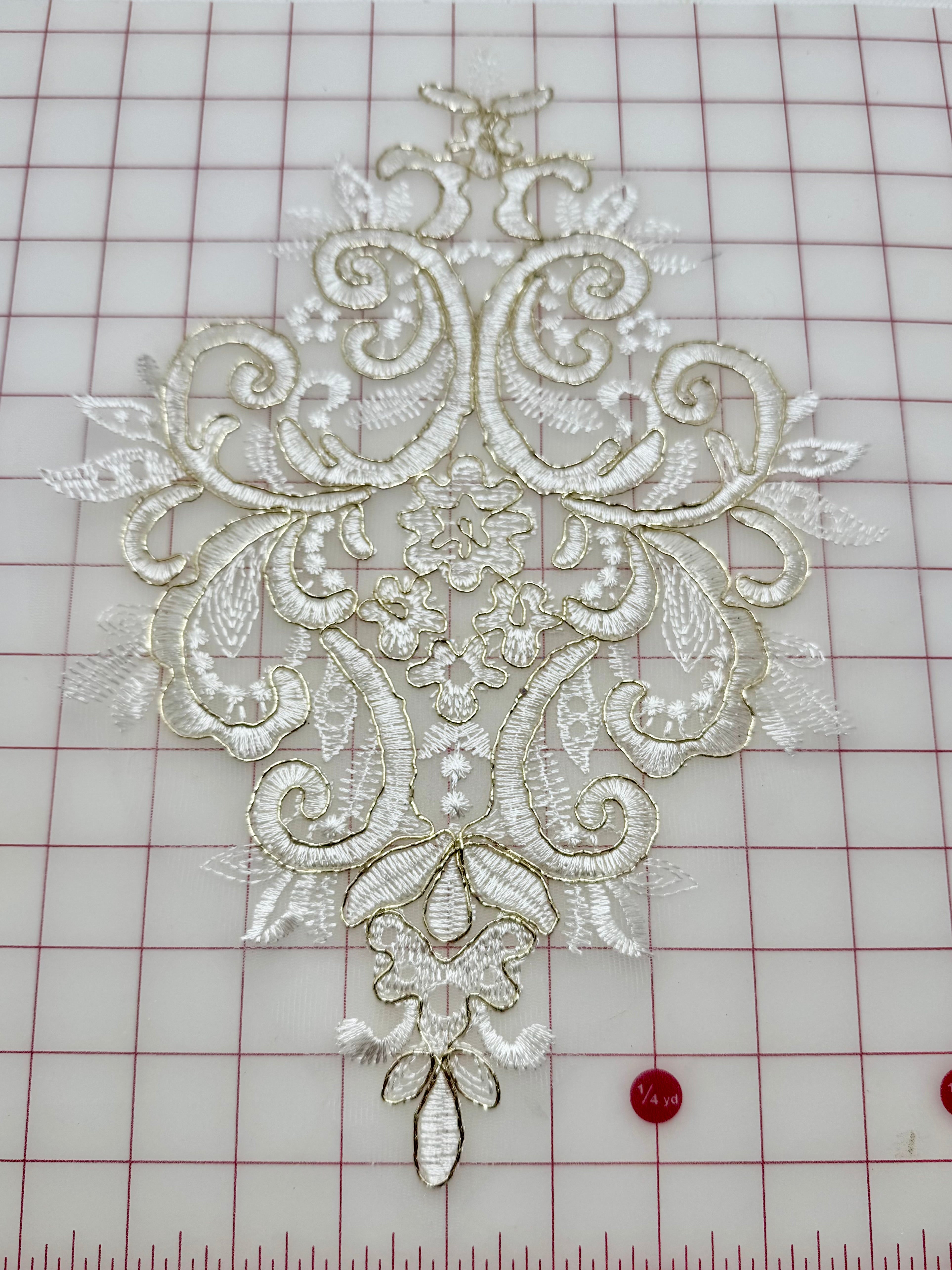 Priced per piece. This stunning, ivory, gold-corded applique is a lightweight applique, perfect for embellishing. classical tutu plates.