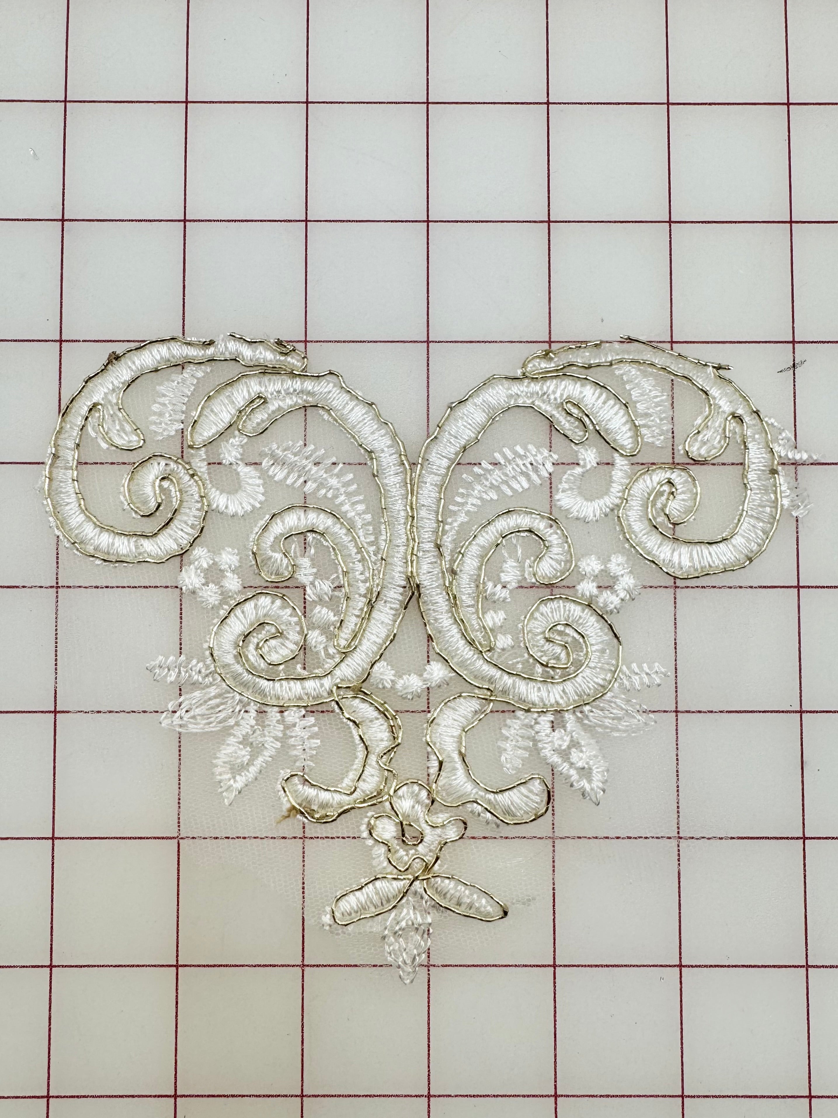 Priced per piece. This stunning, ivory, gold-corded applique is lightweight, perfect for embellishing. classical tutu plates. Can be easily cut in many different ways or used individually as accents when embellishing costumes.