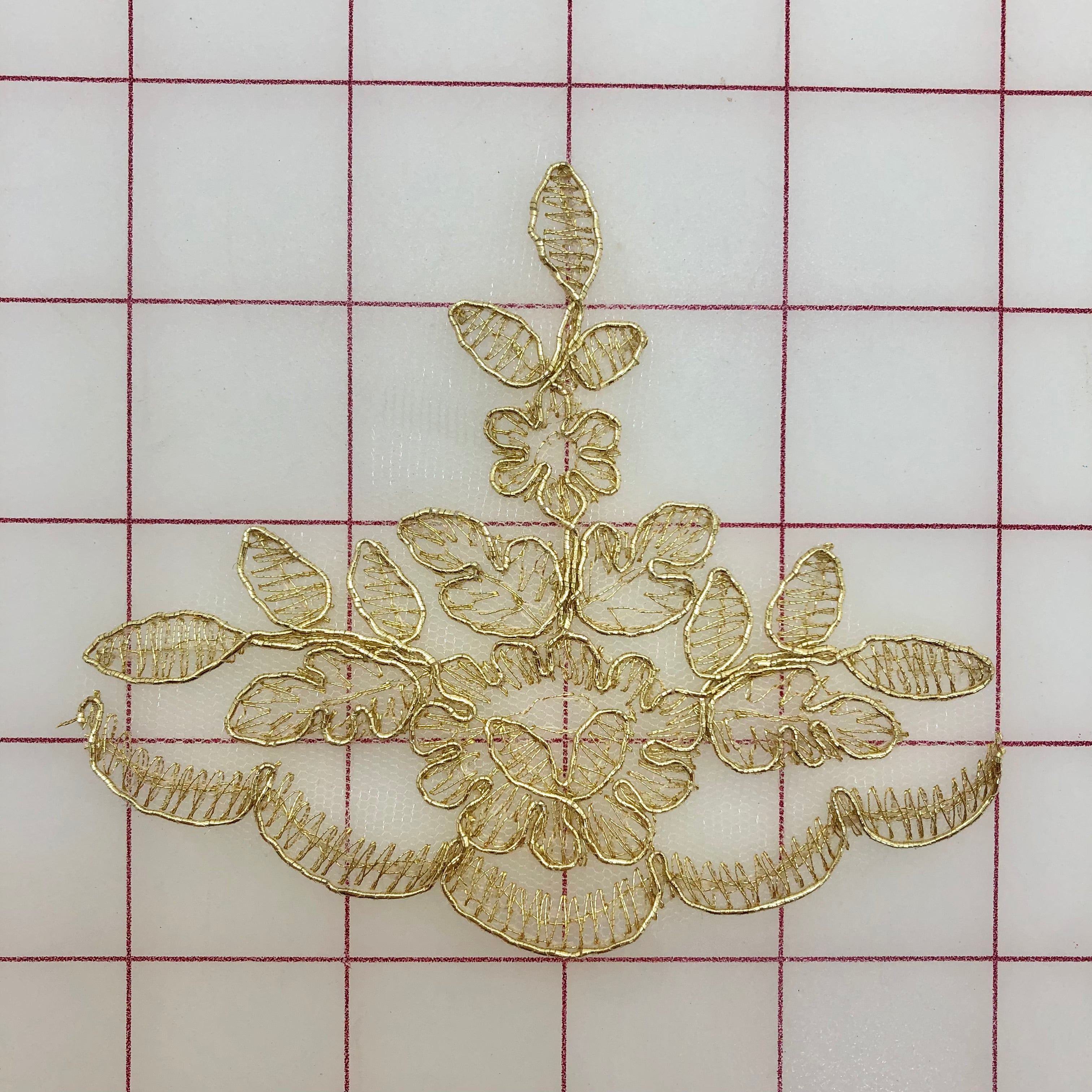 Priced per piece. Beautiful, lightweight, gold metallic corded lace motifs.