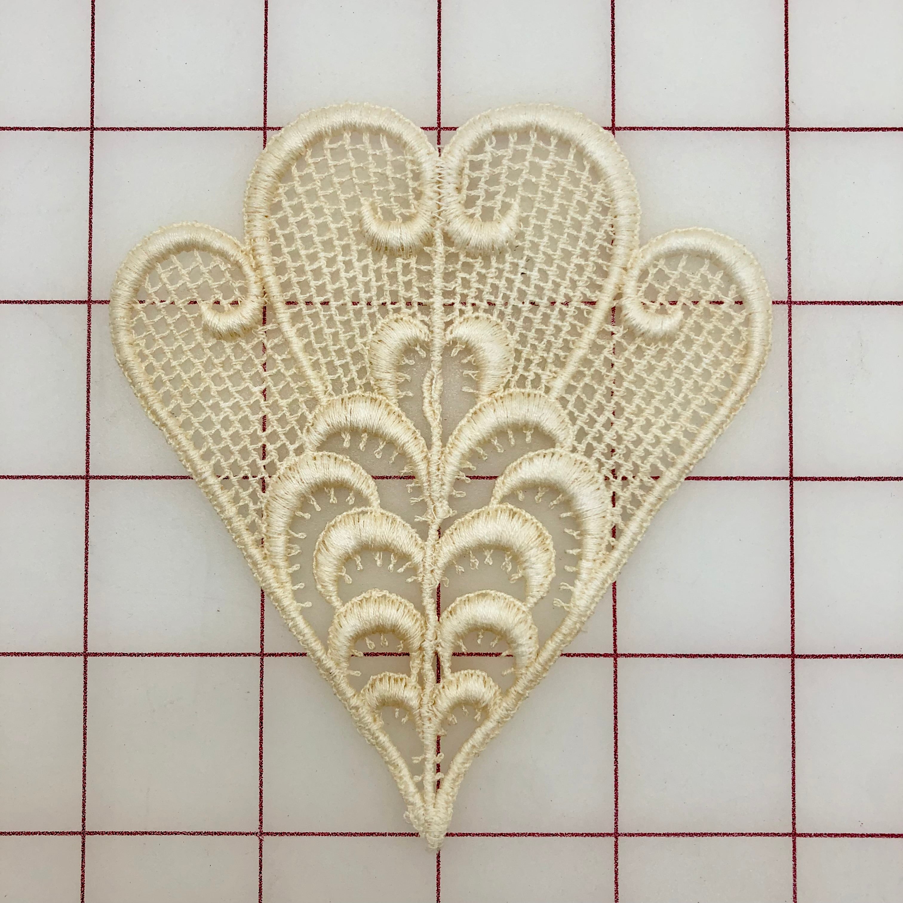 Priced per piece. Beautiful vintage vory embroidererd applique. Dyeable. See picture for size. One square equals one inch. Close-out. cannot be re-ordered.