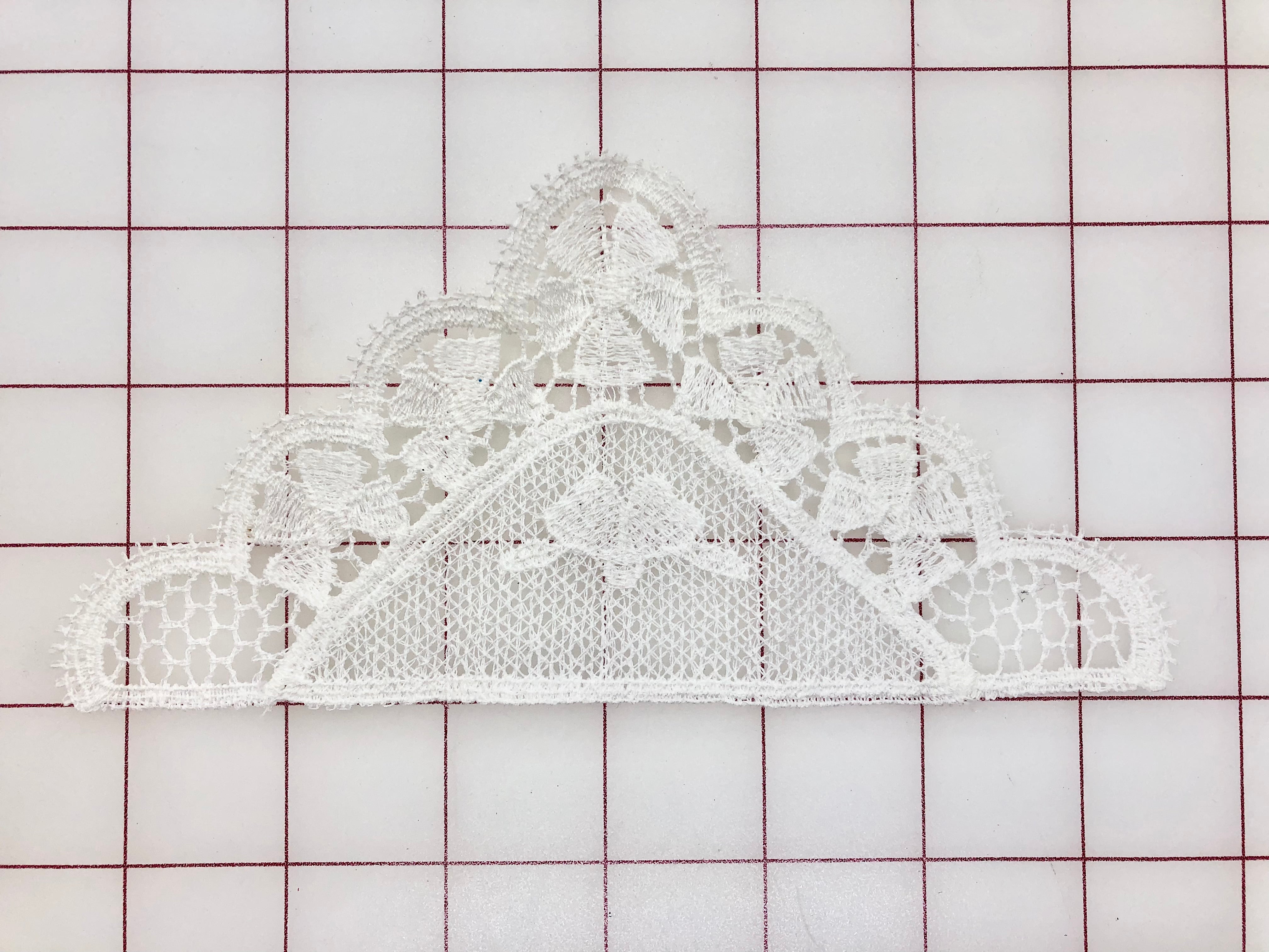 Priced per piece. Light Ivory applique. Dyeable. See picture for size. One square equals one inch. Close-out. cannot be re-ordered.