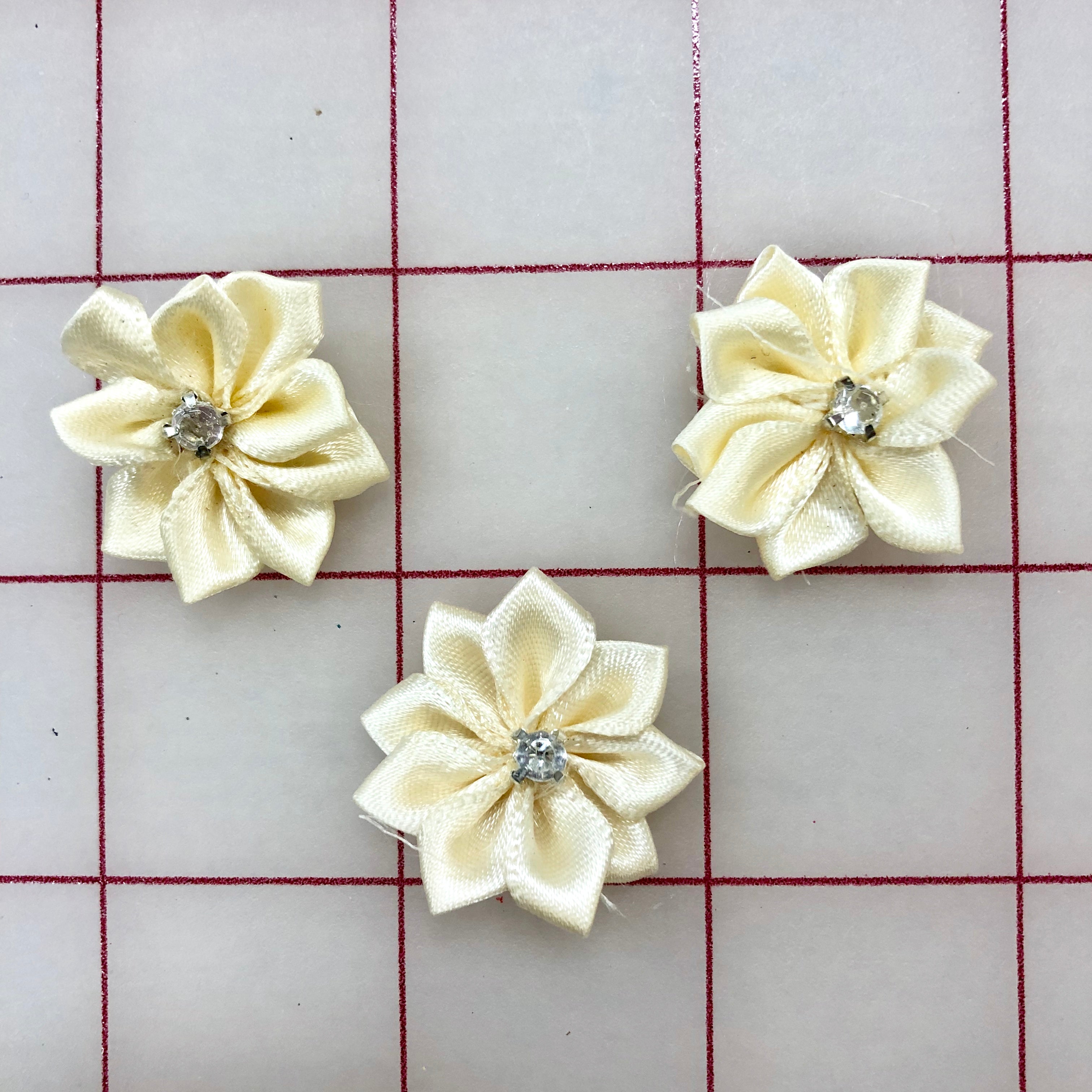 Priced per 3-pack. Beautiful, small, ivory satin flowers.