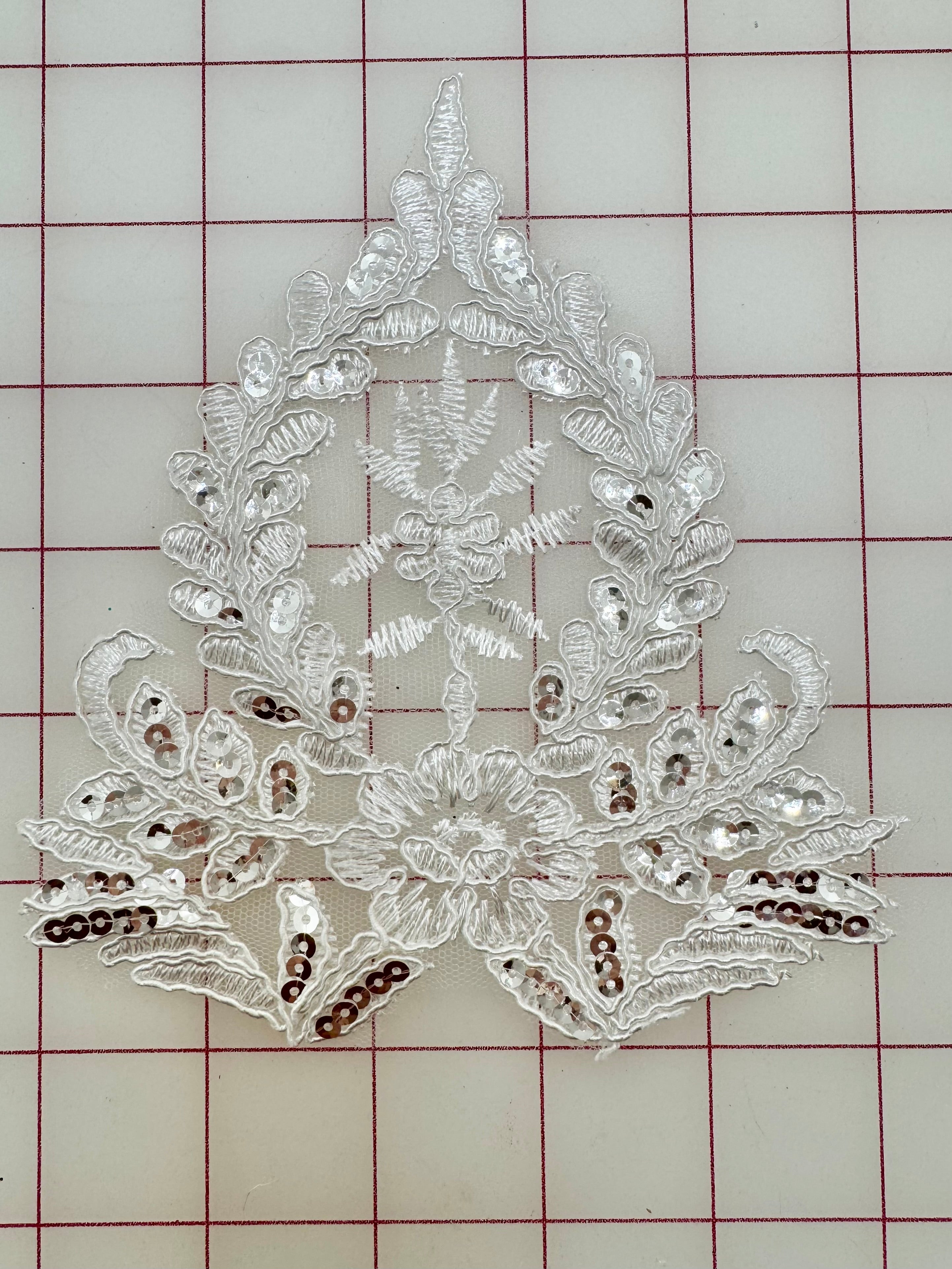 Priced per motif. White sequined, corded lace applique. Dye-able. See second picture to see one that has been tip-dyed.