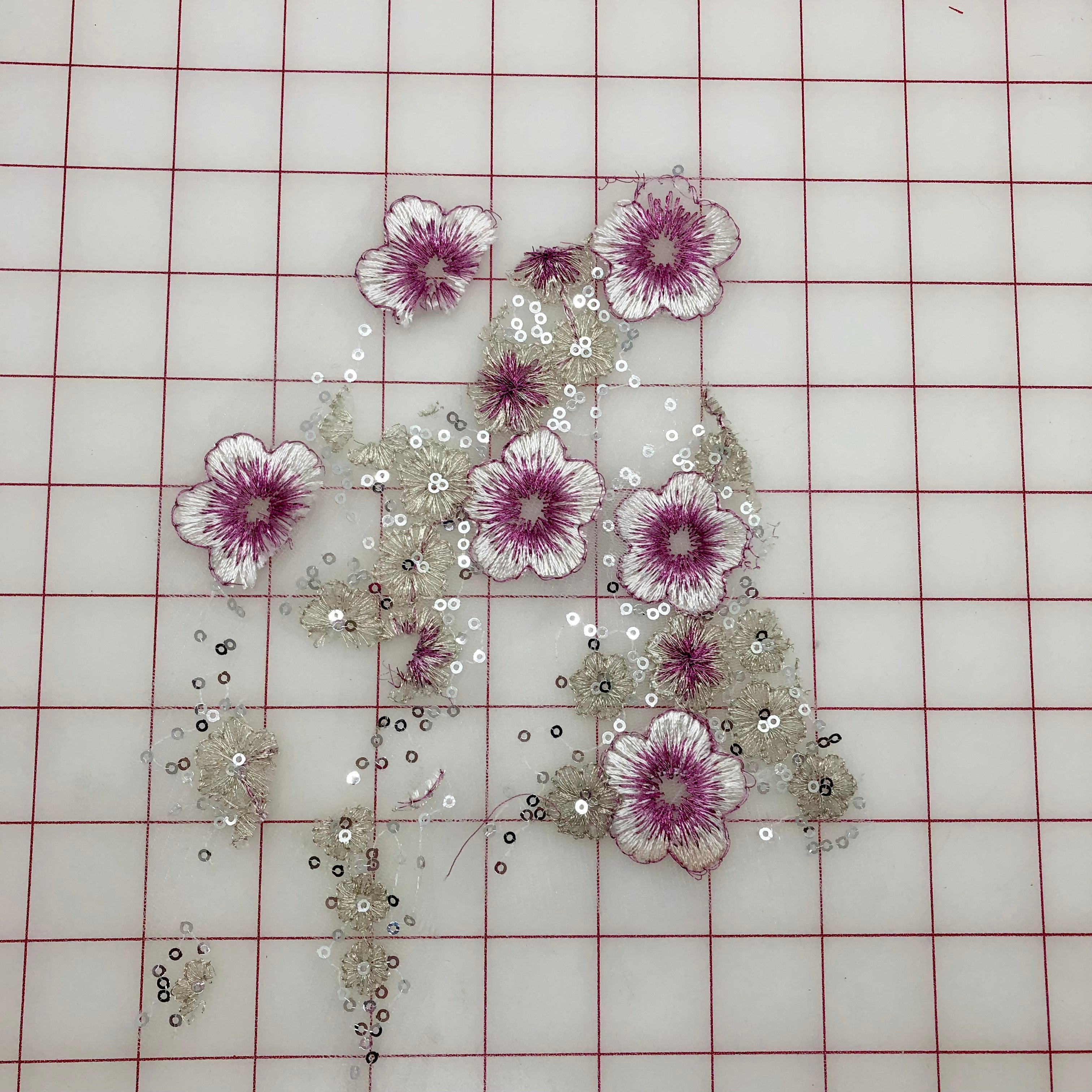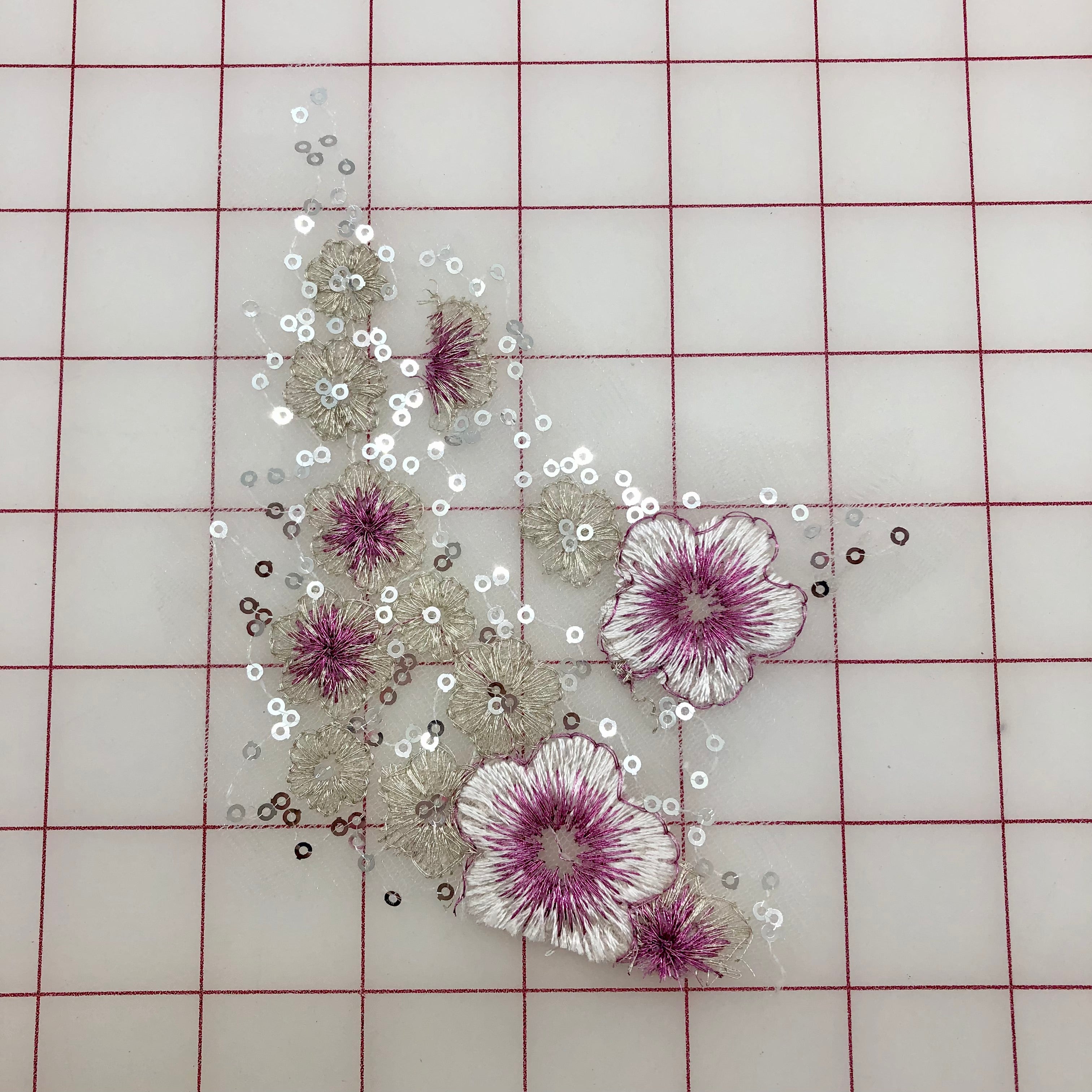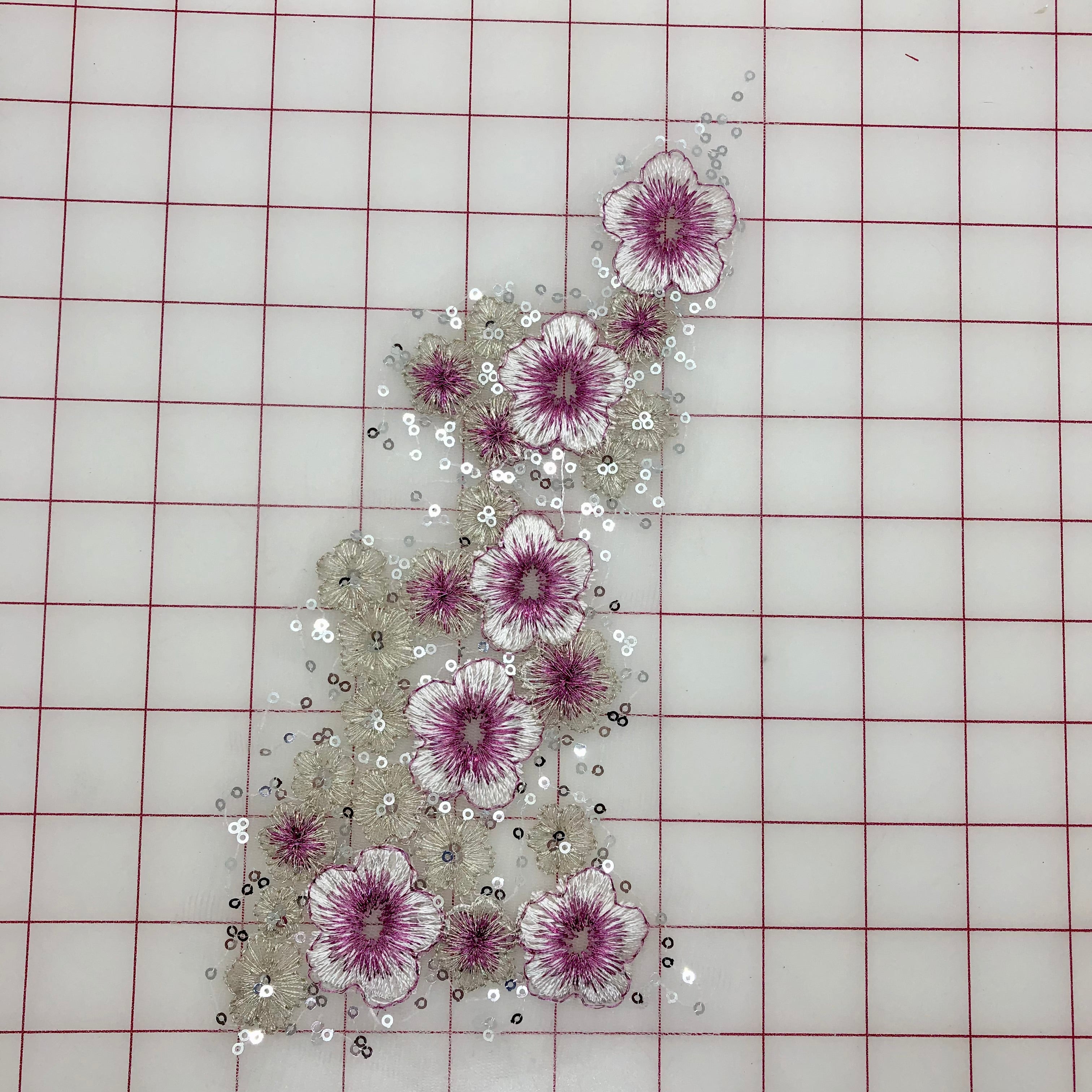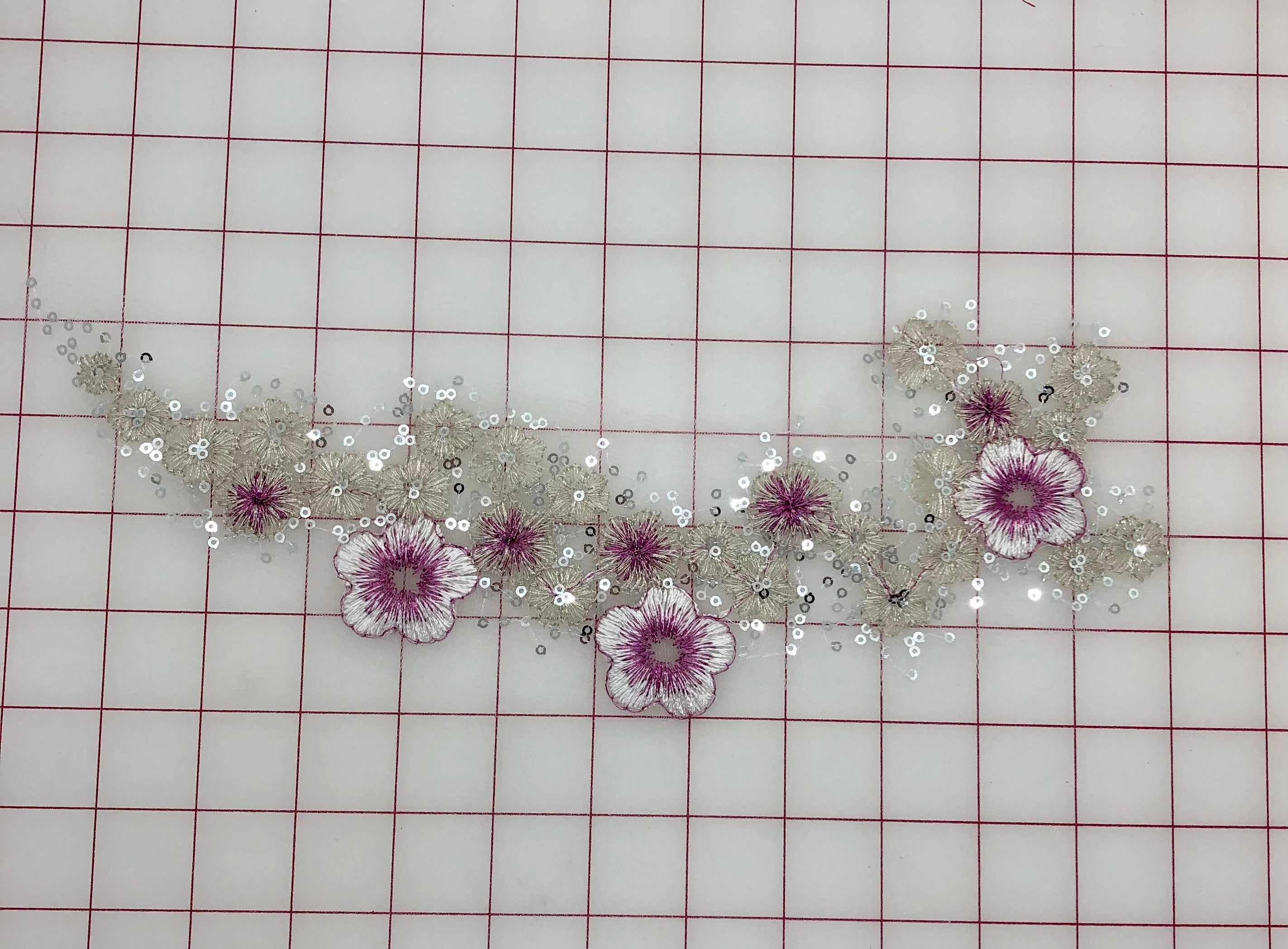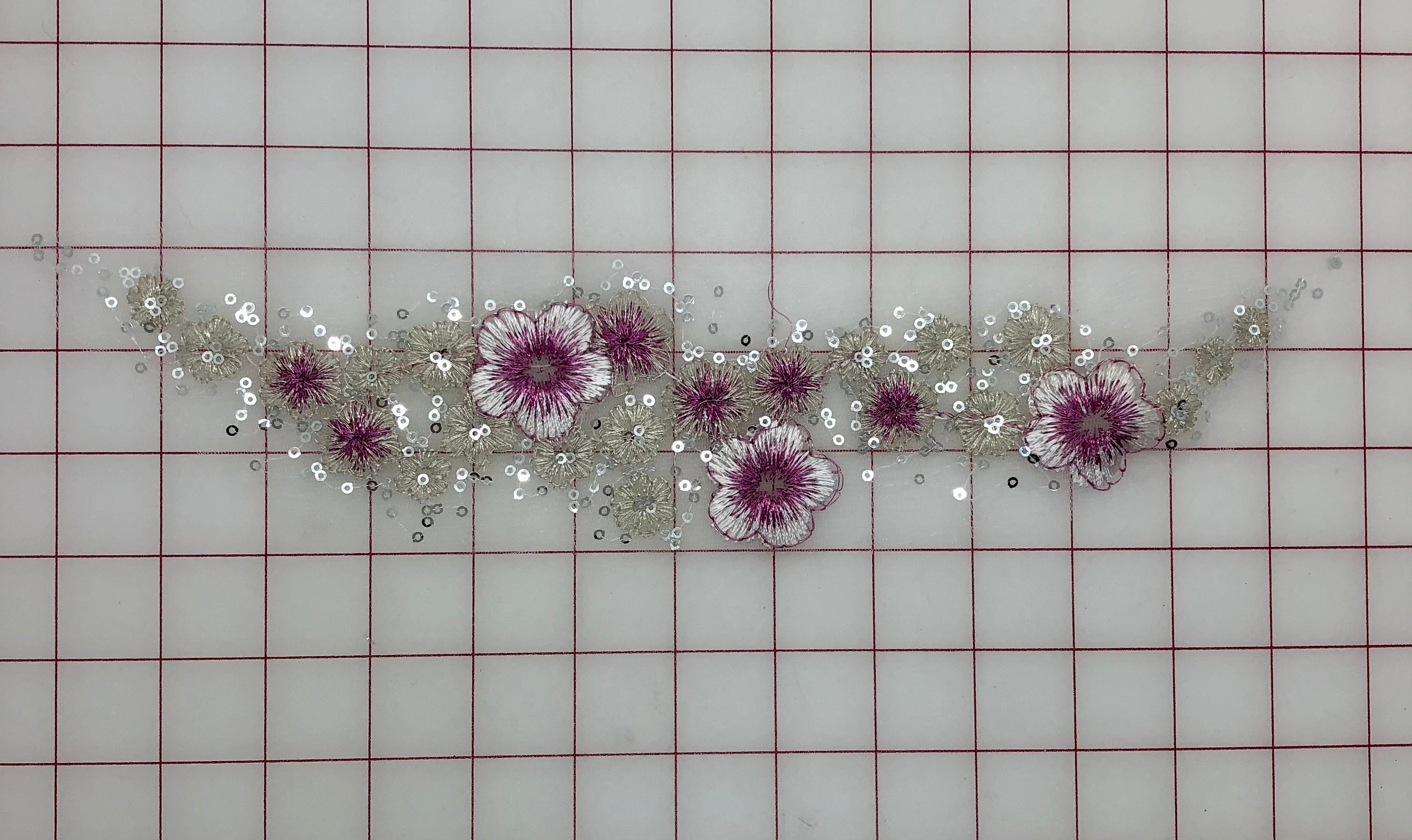 cPriced per piece. Sequined rose and silver lace flower motifs. Lightweight. 4 different designs to choose from! Mix and match to make beautiful, original embellishments.