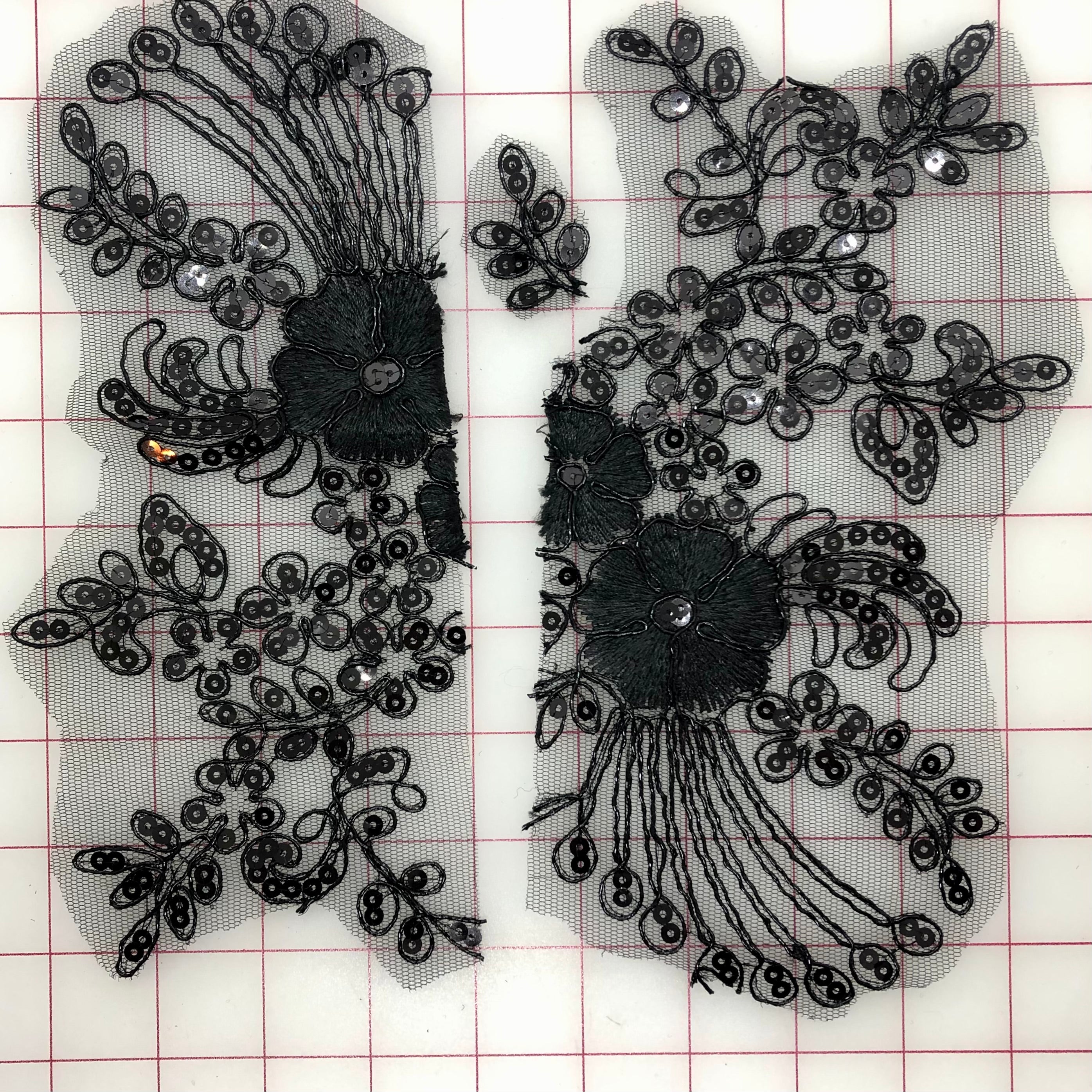 Priced per set. Sequined lace motif pieces. Black. Can be easily cut into smaller motifs.