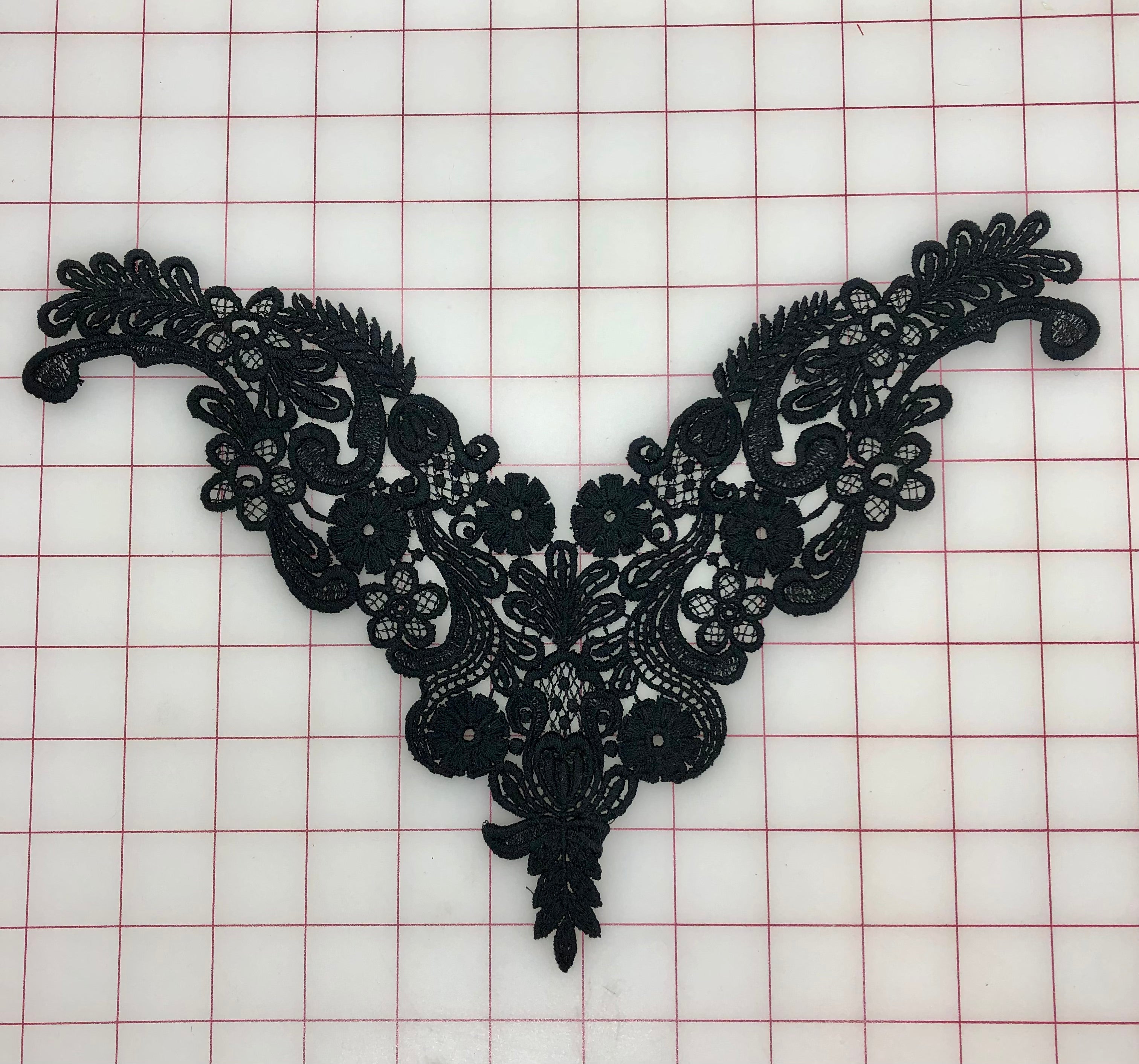 Priced per piece. This stunning, black, venise lace applique is a lightweight applique, perfect for embellishing classical tutu plates.