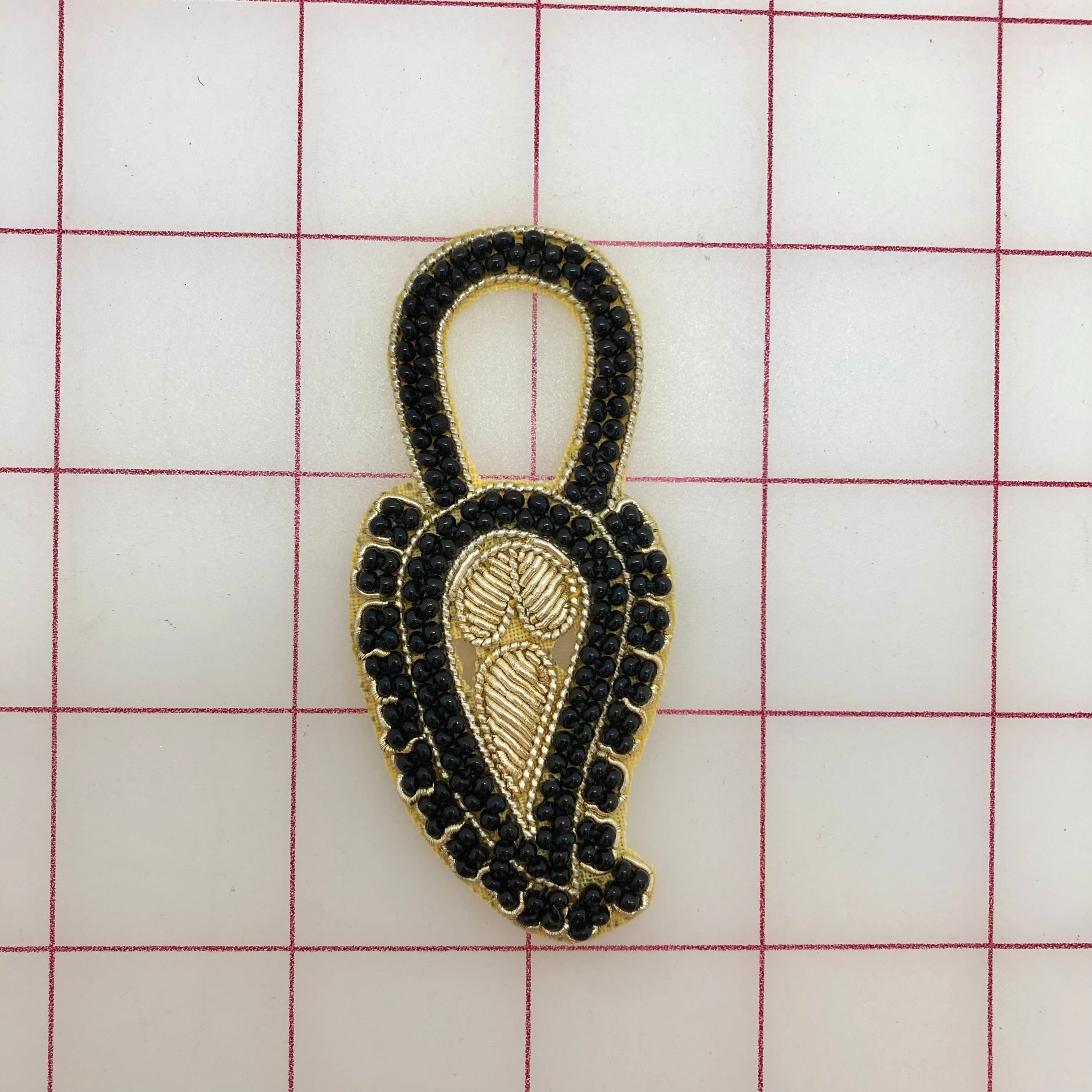 Priced per piece. Vintage black/gold metallic bullion applique. For size: One square equals one inch.