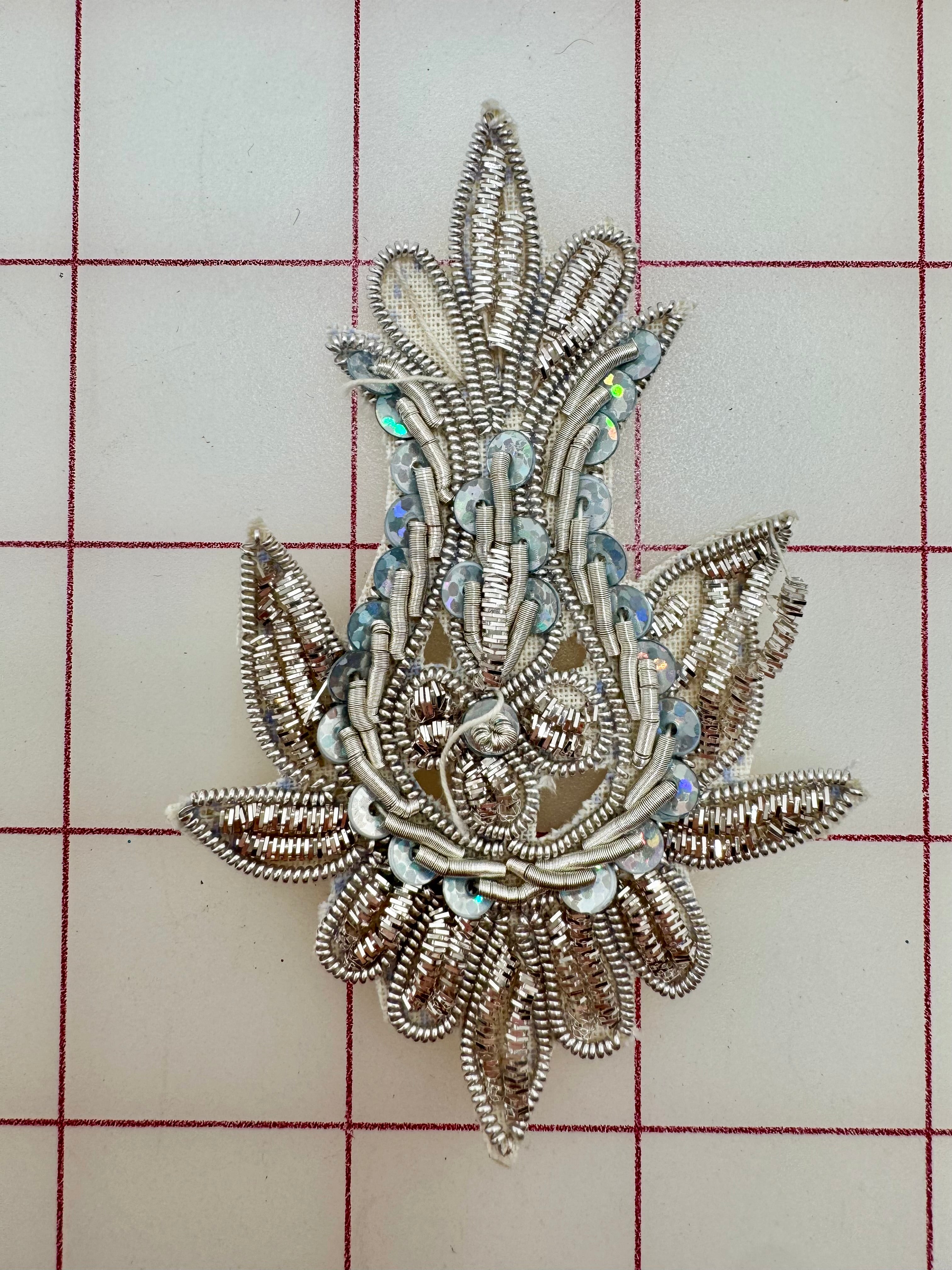Priced per piece. Vintage silver metallic bullion applique. Good condition, but missing beads in one area.
