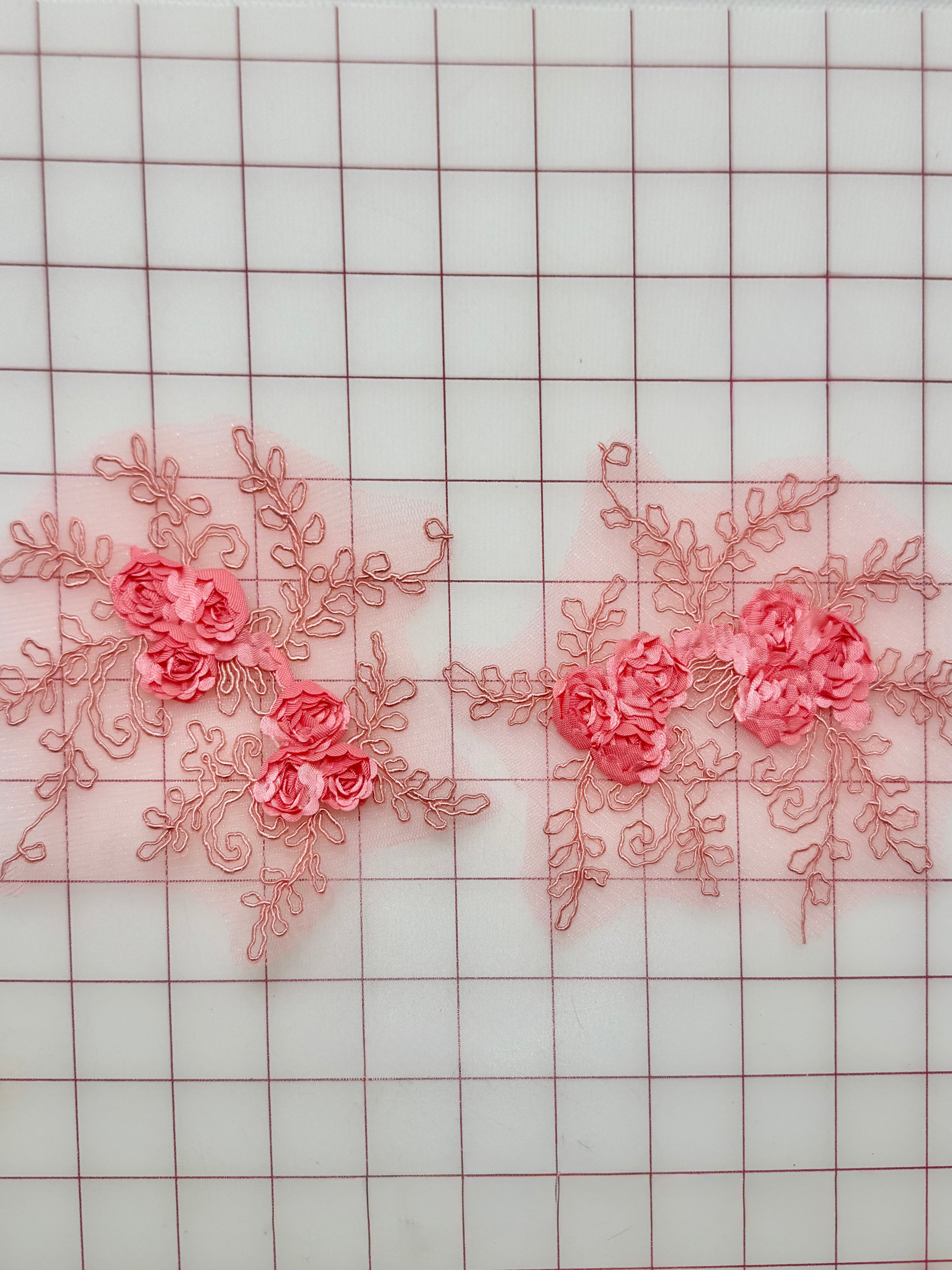 Priced per pair. Beautiful large, coral lace motifs with 3D flowers. Very lightweight.