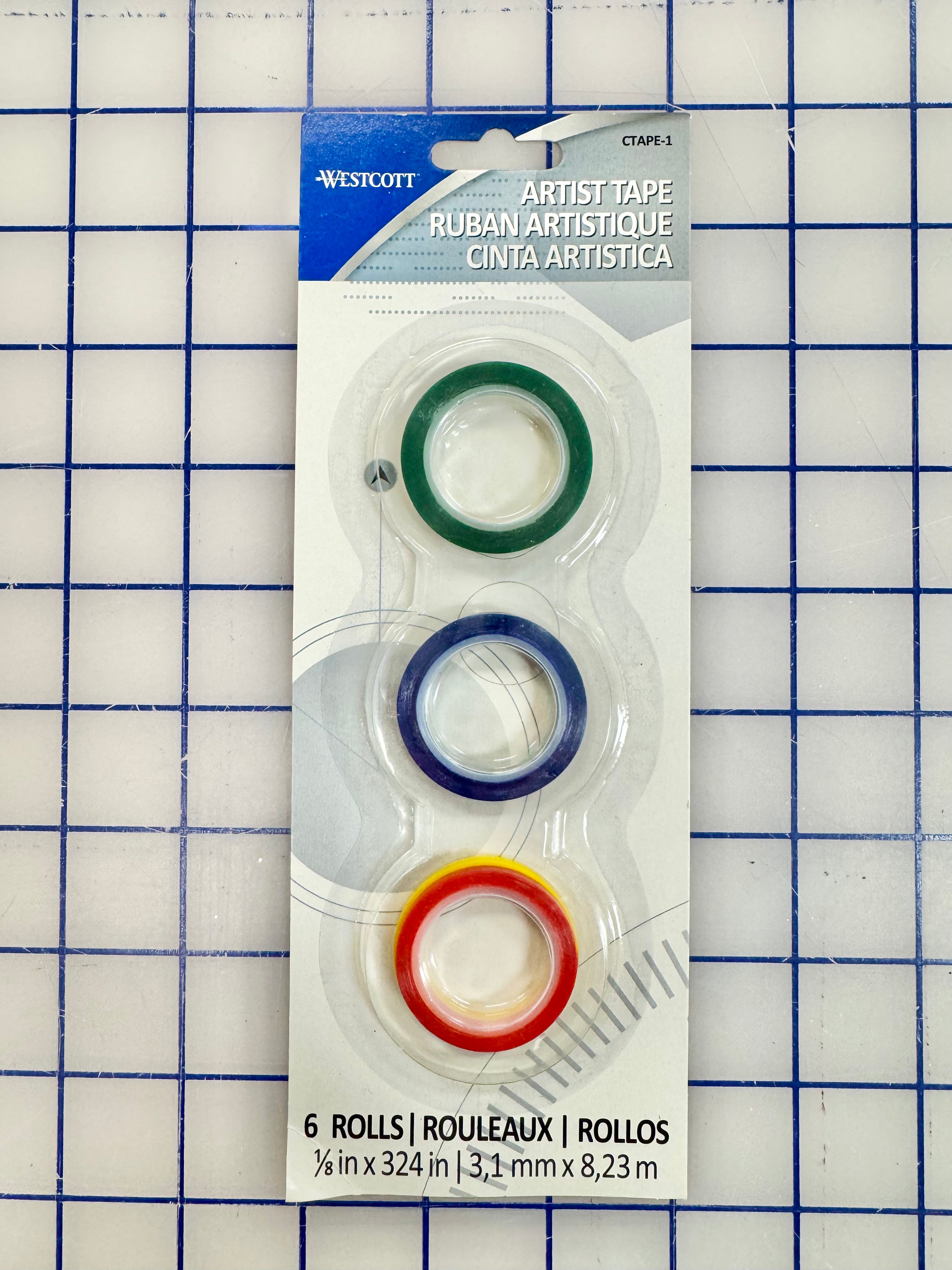 Priced per 6-roll pack . Colors Artists Tape,1/8-inch wide. Great for draping.