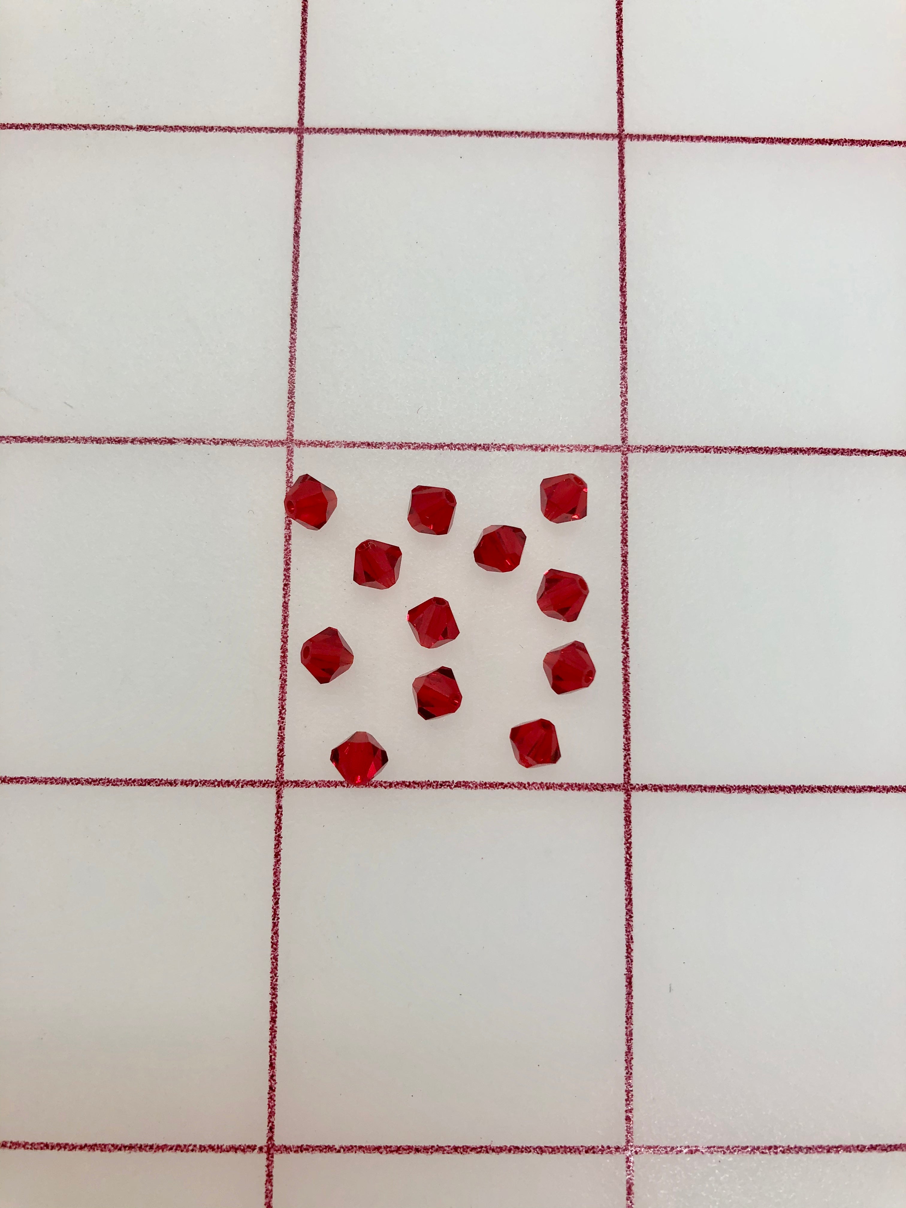 Priced per dozen. Discount for one gross (144 pieces). 4mm Swarovski 5301/5328 bicone beads are beautiful, high-faceted beads. They are machine-cut and have a hole drilled through the center, in which they can be sewn or wired together. These beads are perfect for tiara-making, jewelry and much more. If using beads in tiaras to be worn on stage, Swarovski is really the only choice. They are sparkly, elegant crystal beads and will be easily seen from the audience