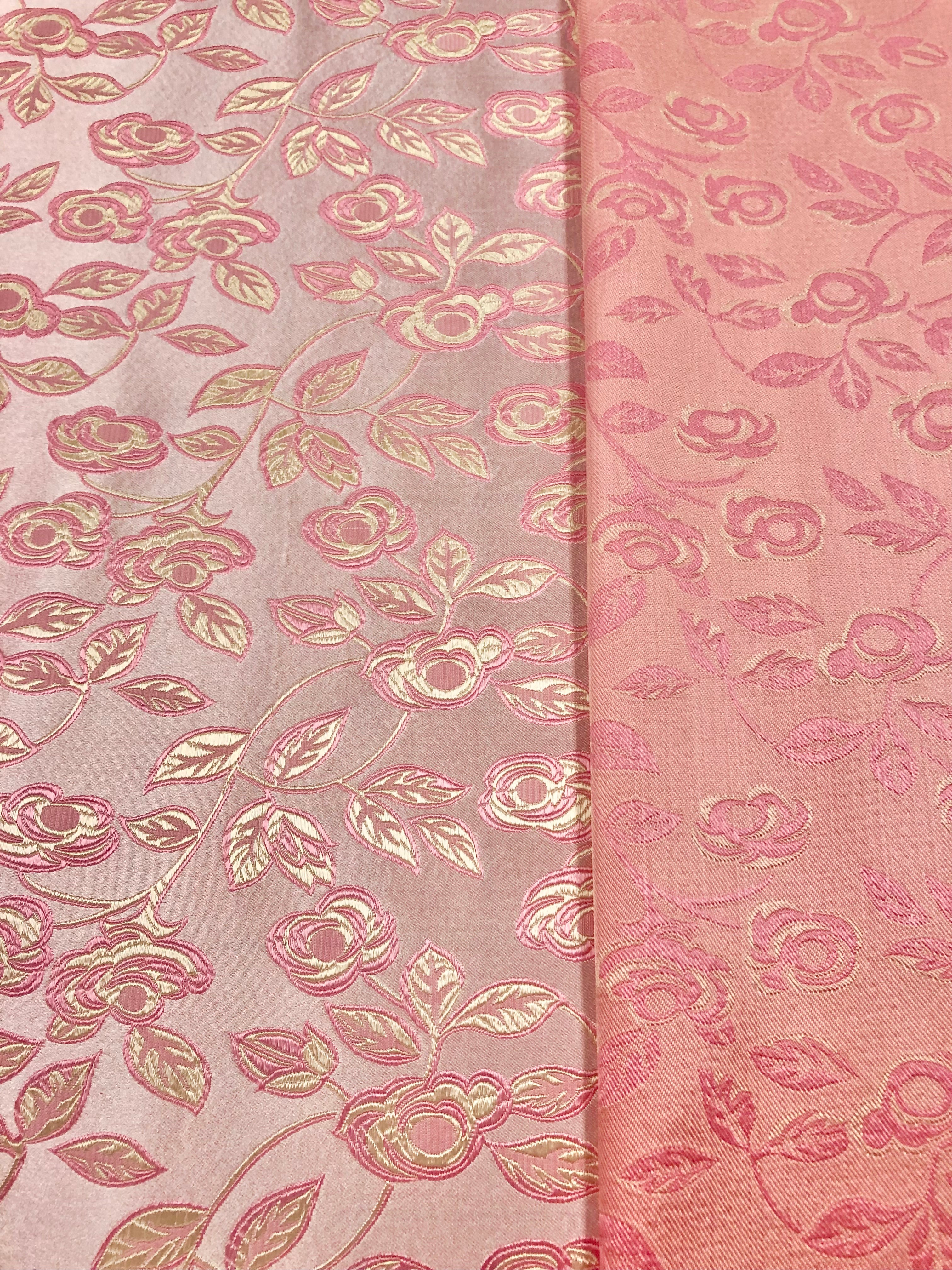 Priced per yard. Gorgeous, reversible silk/rayon European pink (a pale peachy color) brocade. Highest quality fabric!