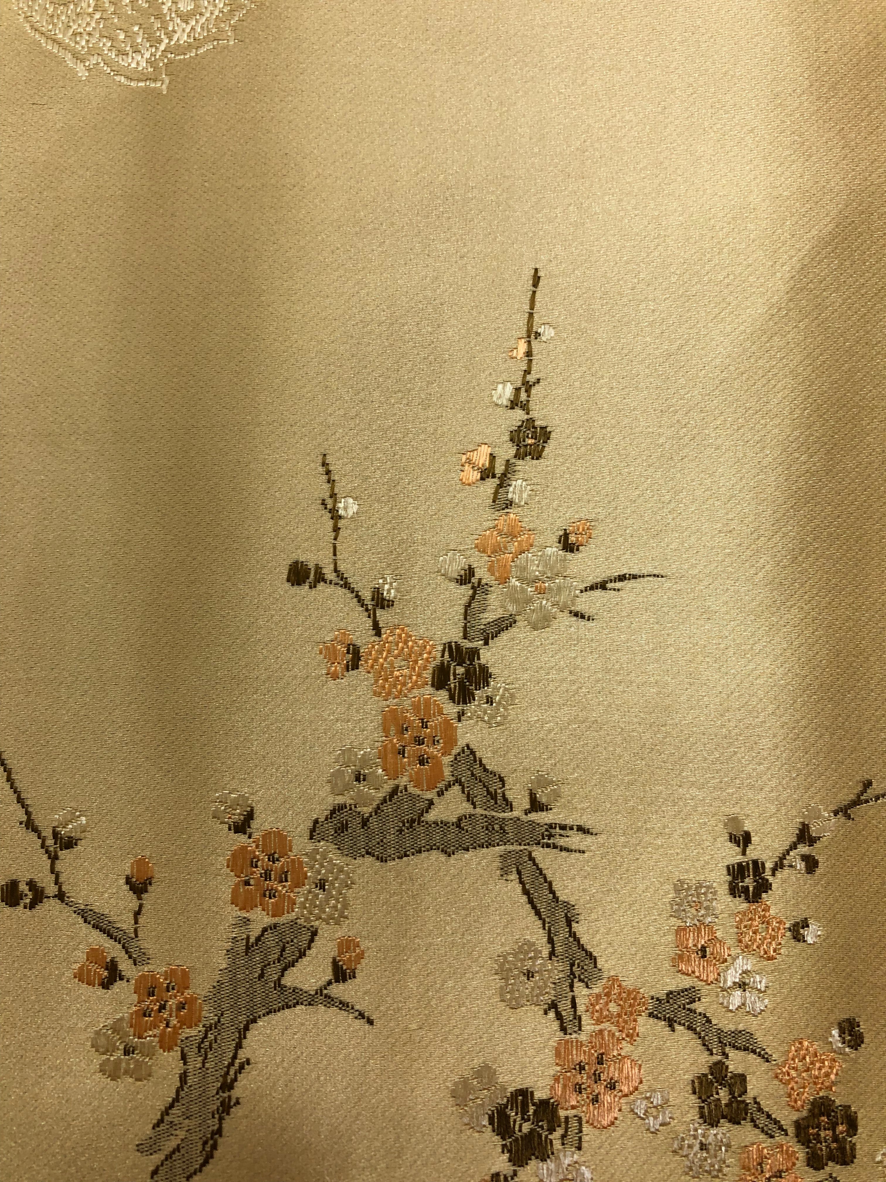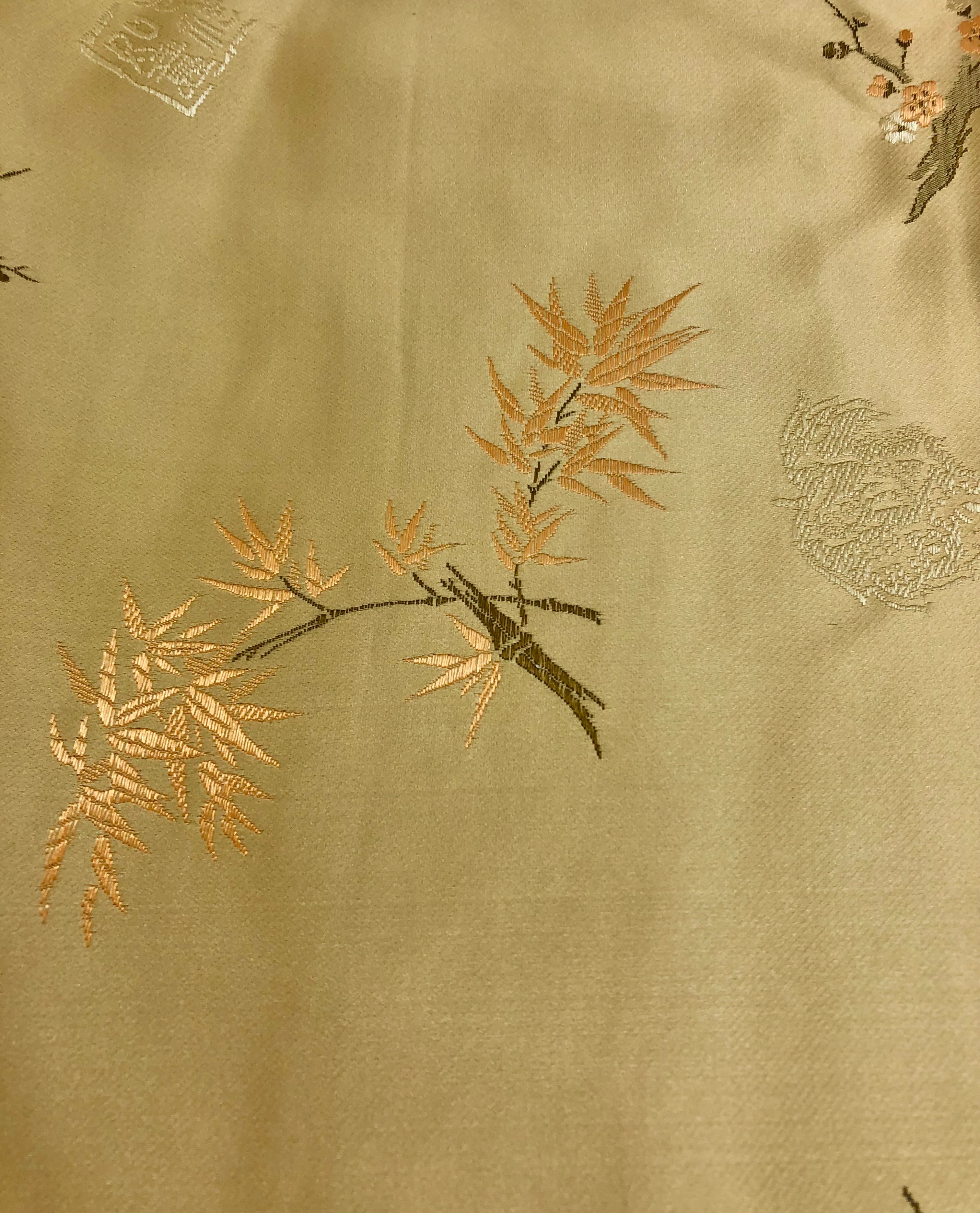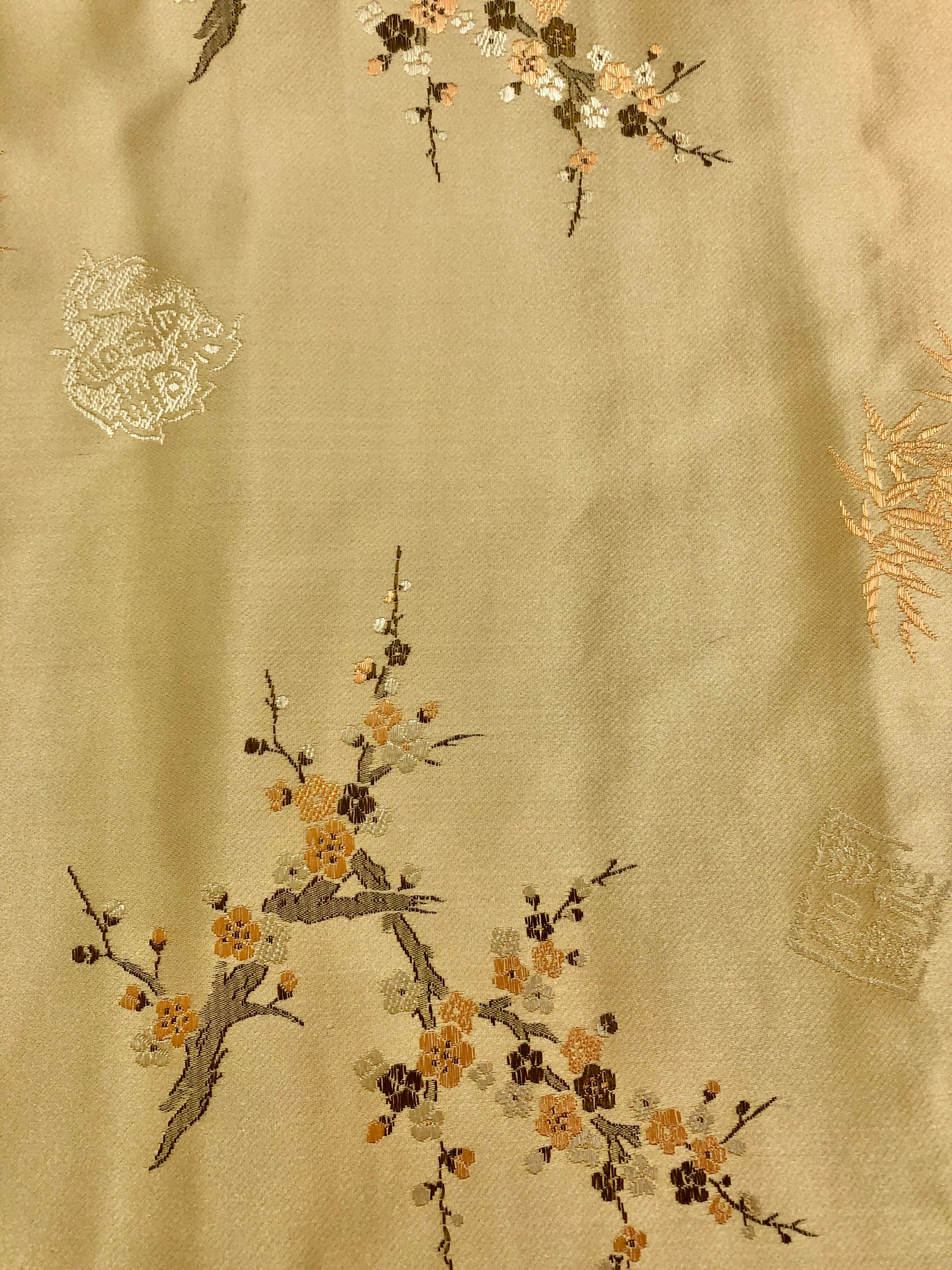 Priced per yard. Silk/Rayon golden yellow brocade. 45-inches wide.