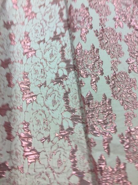 Priced per yard. Gorgeous, 3D reversible pink brocade. 54-inches wide. Picture shows both sides of fabric.