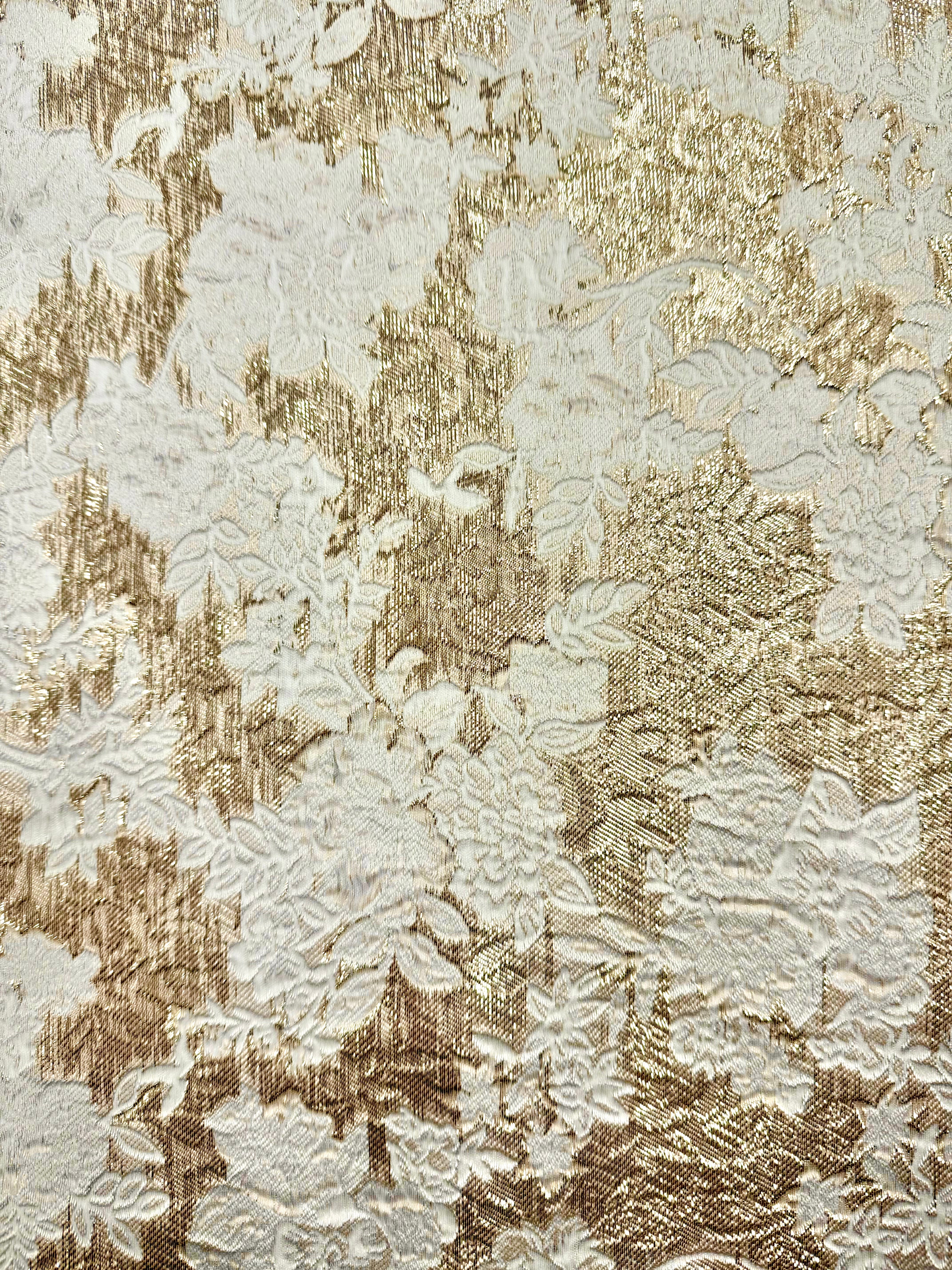 Priced per yard. Gorgeous, palest gold with winter white, reversible brocade. 58-inches wide. One of our most popular brocades!