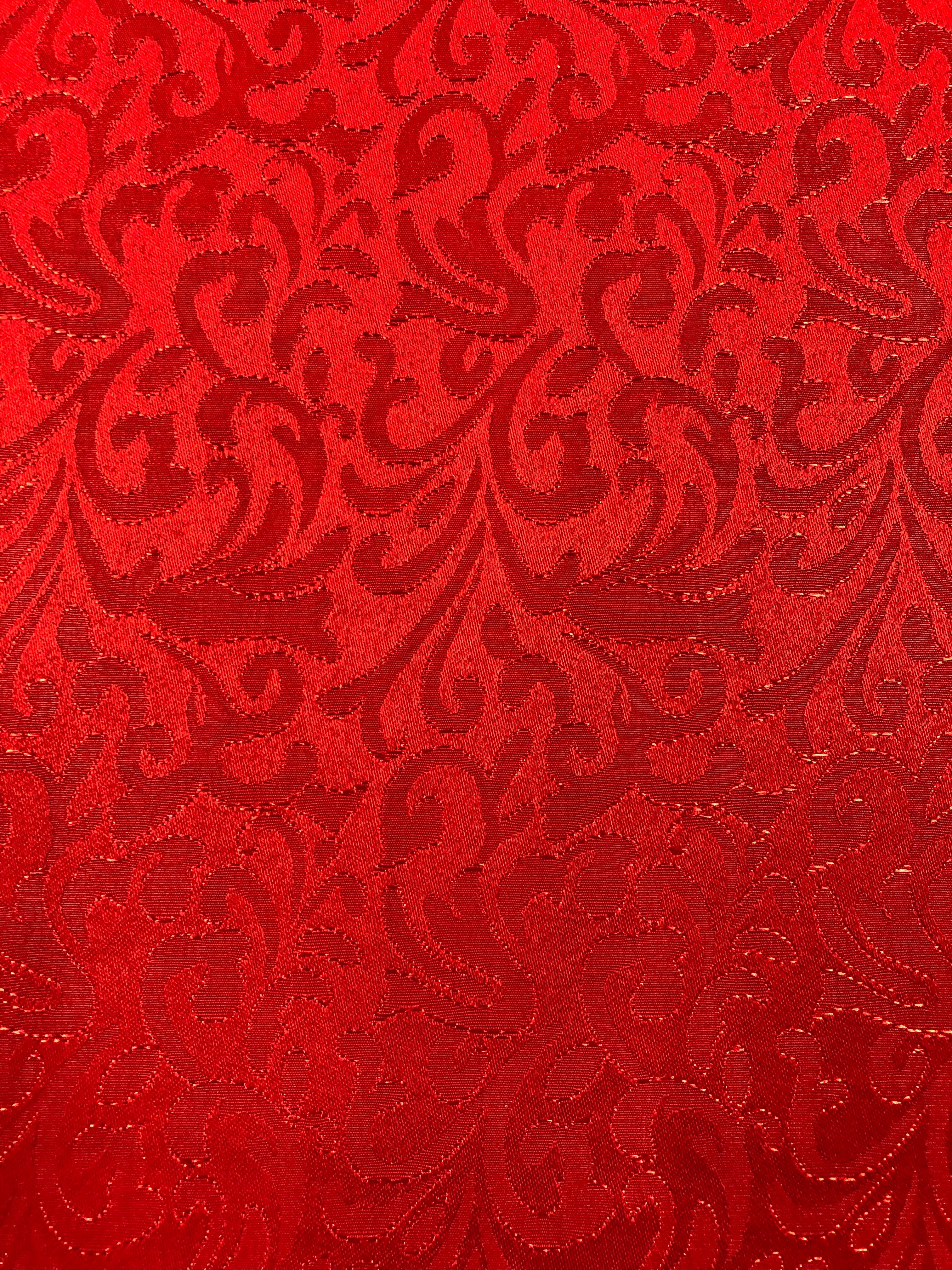 Priced per yard. Bright Red Matte Majestic Jacquard. 60-inches wide.
