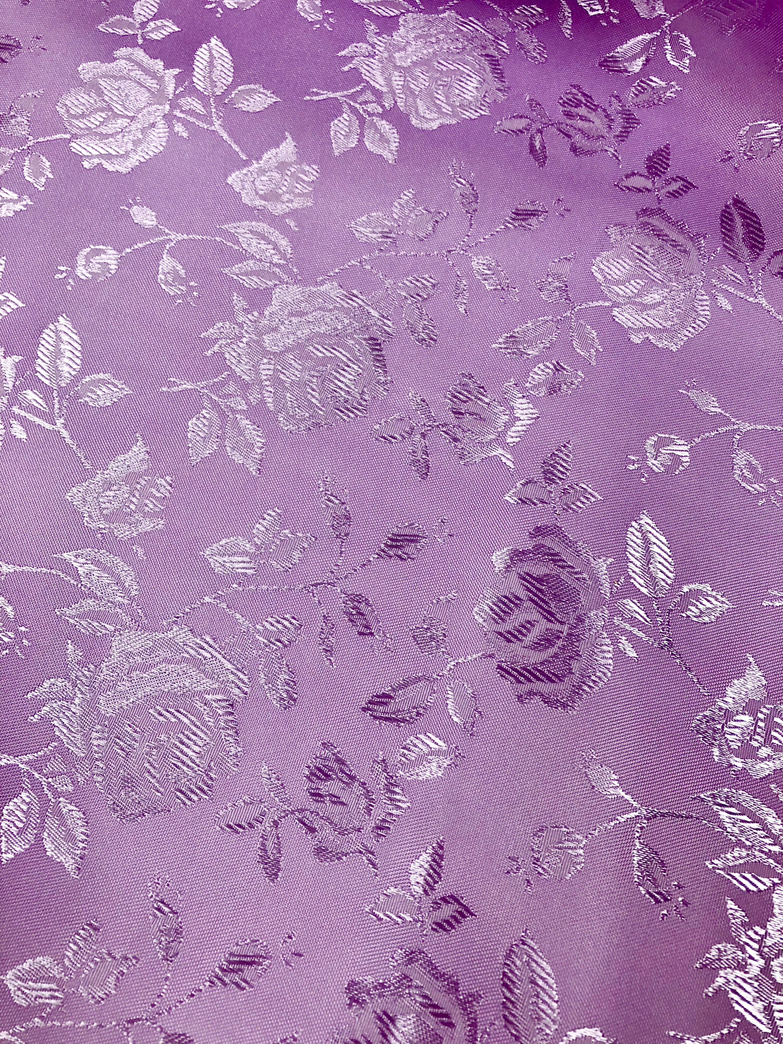 Priced per yard. Lavender satin jacquard. 60-inches wide. Great weight for ballet bodices and men's tunics/jackets. Can be used on the shiney or the matte side.