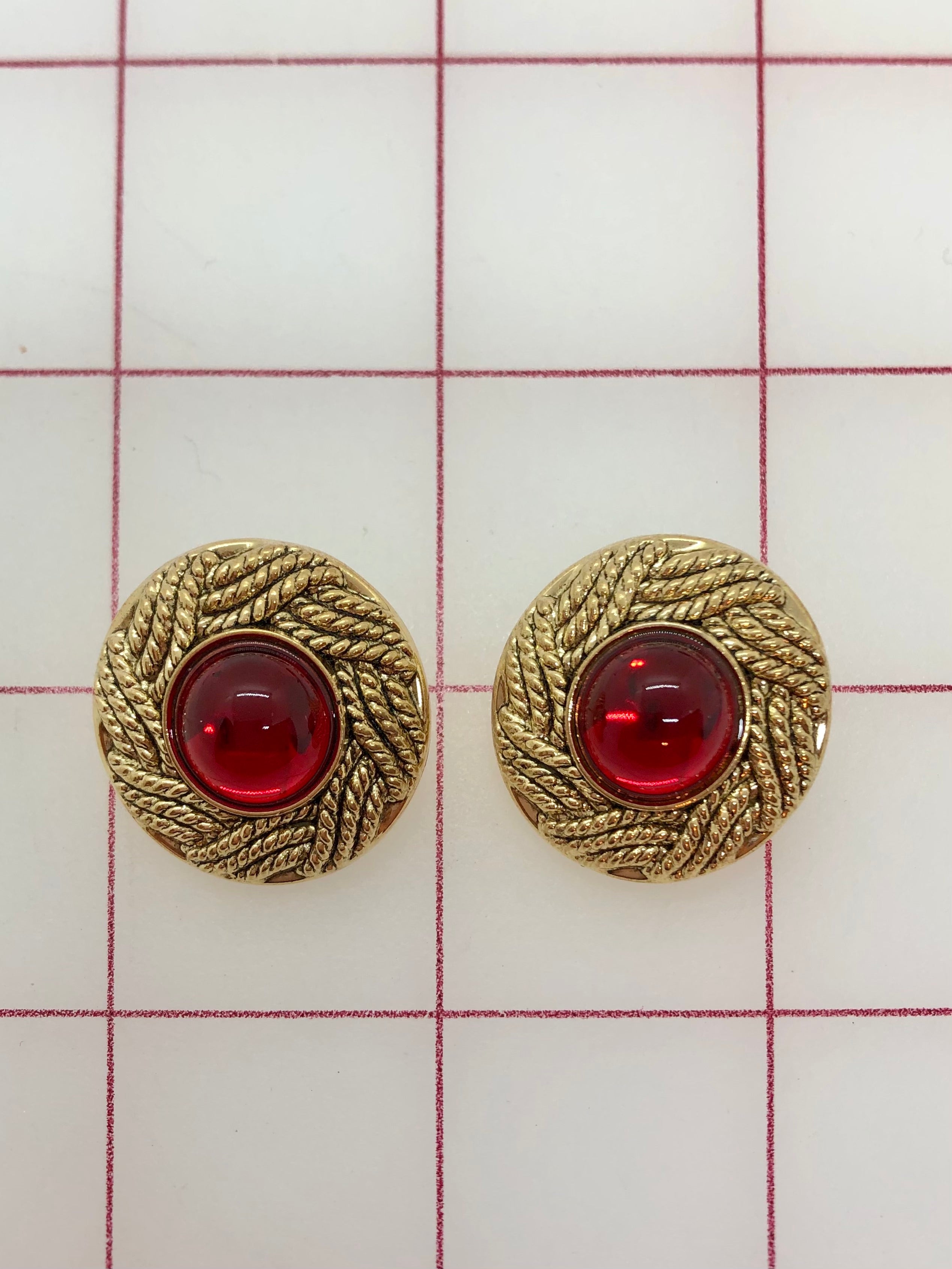 Priced per 2-pack. Gold Braided-Design Button with Red Acrylic Stone 2-Pack. Gorgeous! Can be used as a finishing touch on costumes, tiaras and other headpieces. Perfect for a center piece on a tiara.
