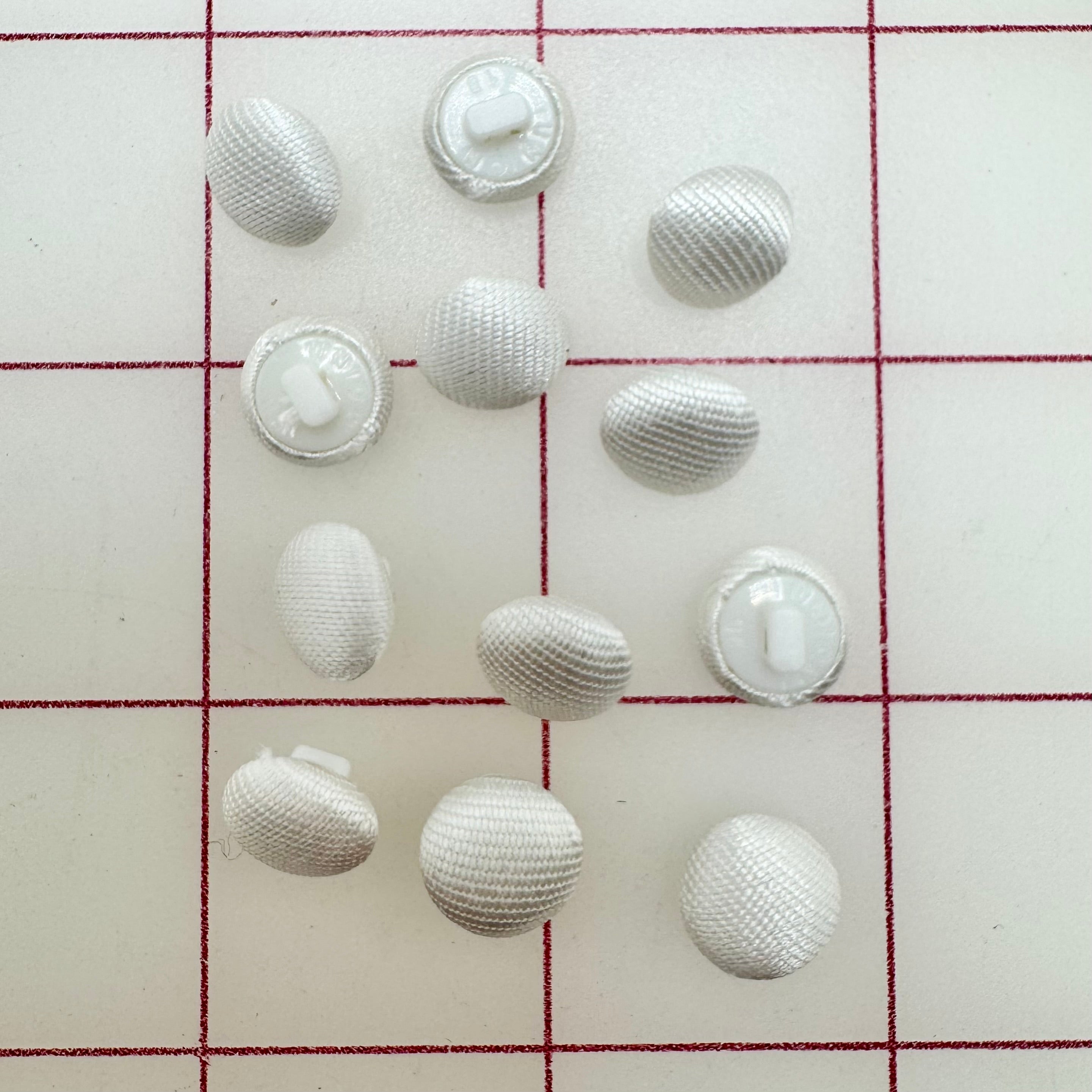 Priced per dozen. Bridal-style white covered buttons. Size 18L = 11.5mm.