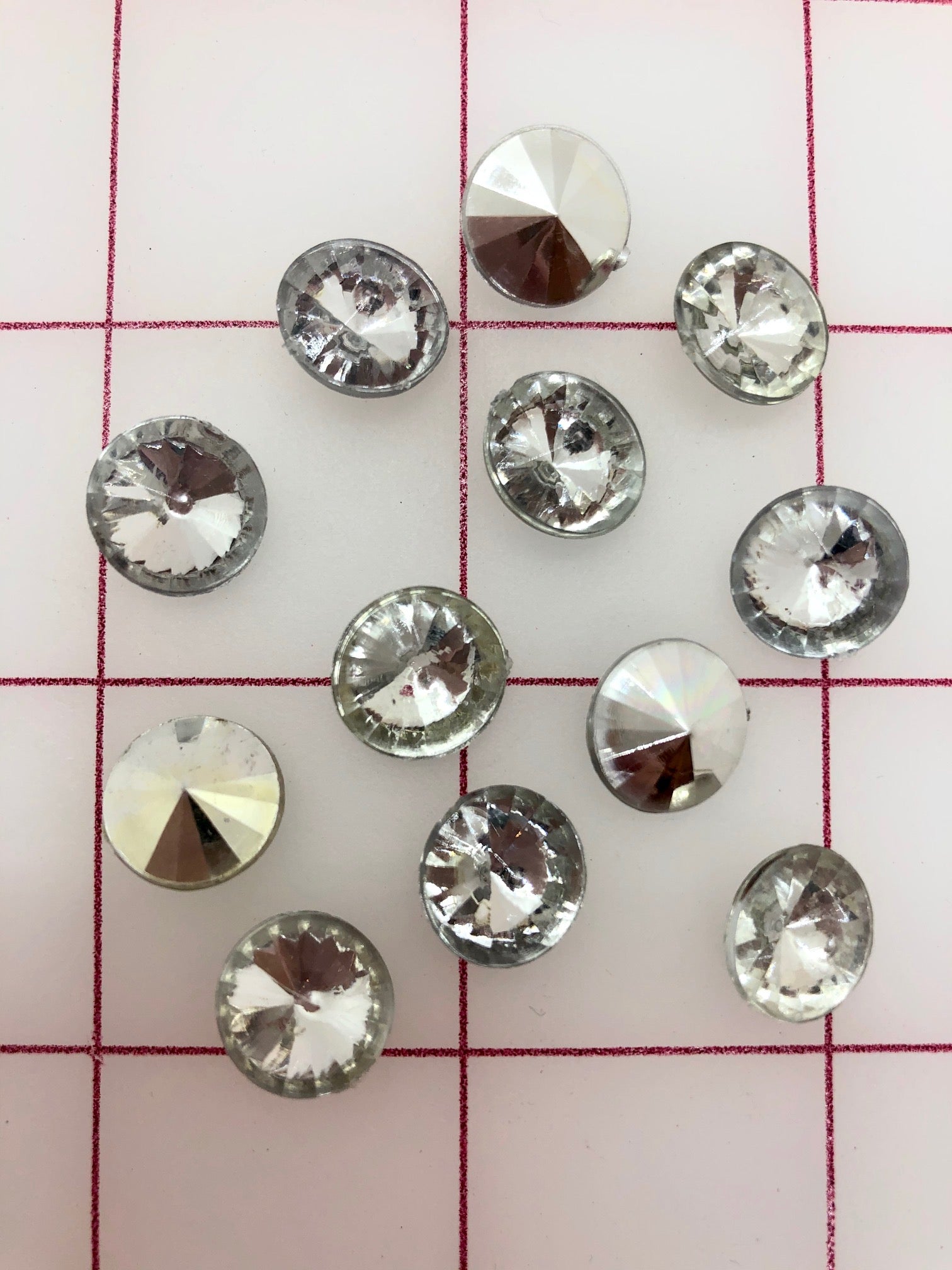 Priced per dozen.  Acrylic gems.  Perfect for embellishing headpieces and tutu plates and bodices.  Easy to glue on.  Picture shows both front and back of gem.