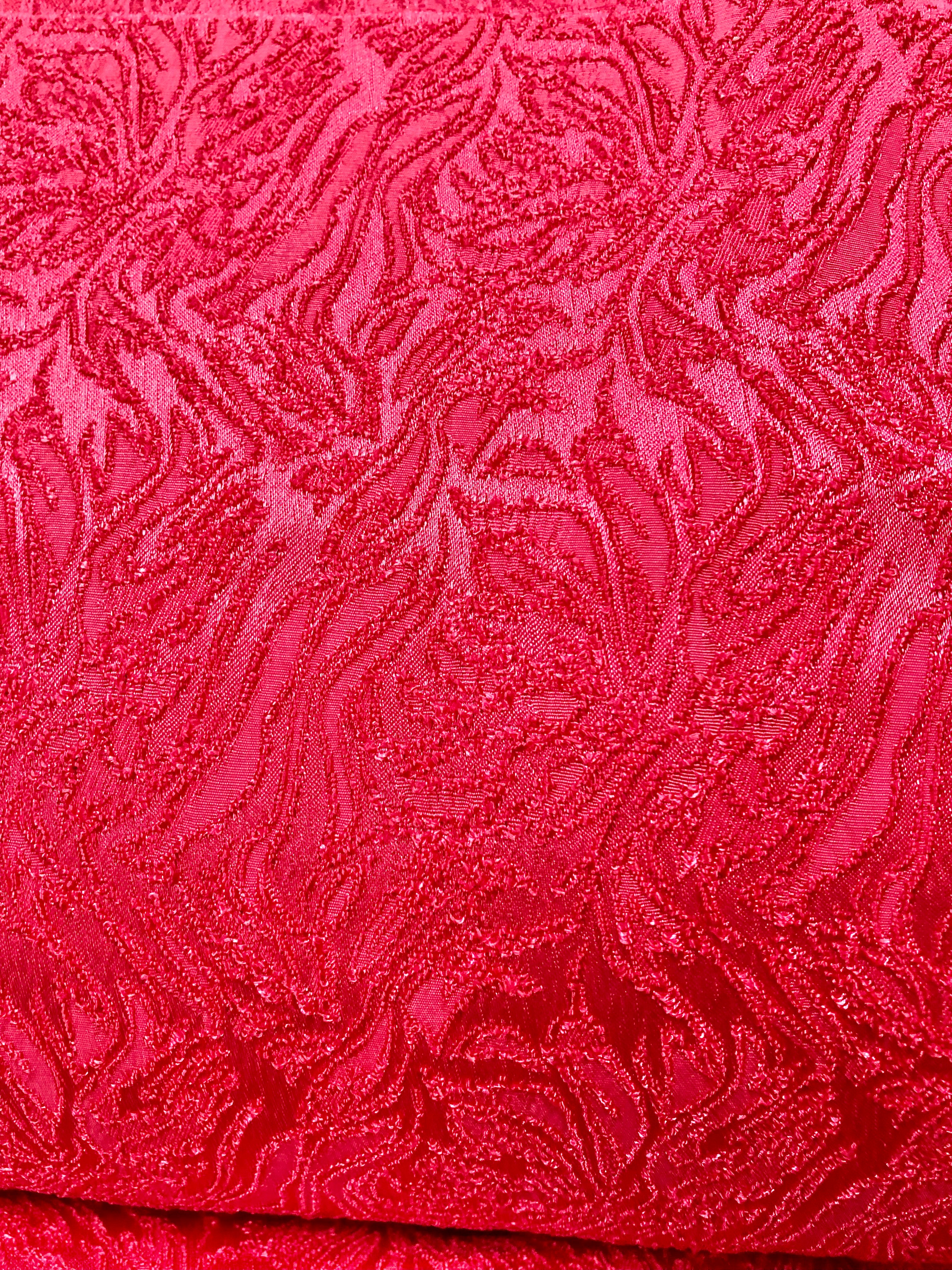 Priced per yard. Fuchsia stretch brocade. 57-inches wide.