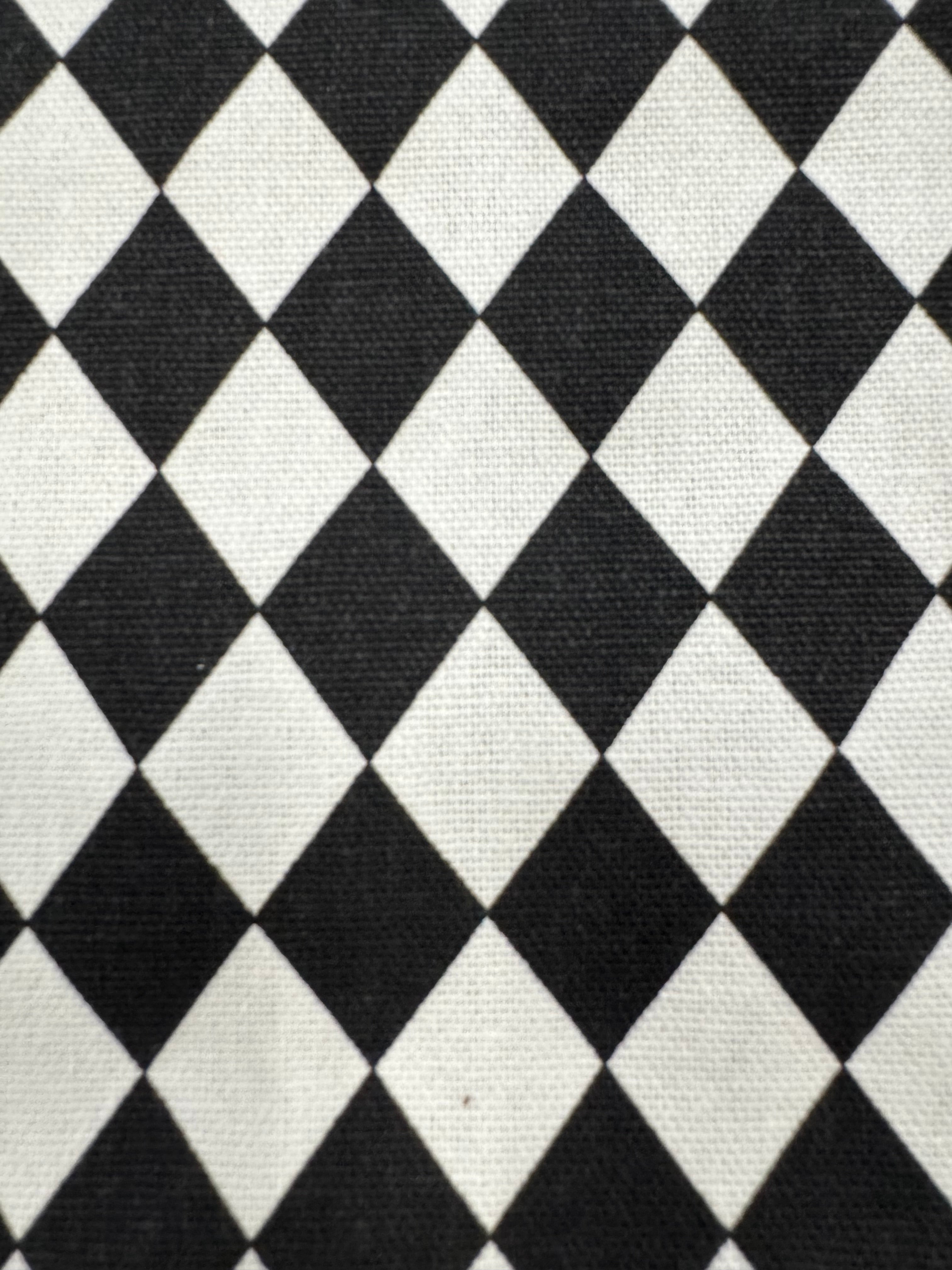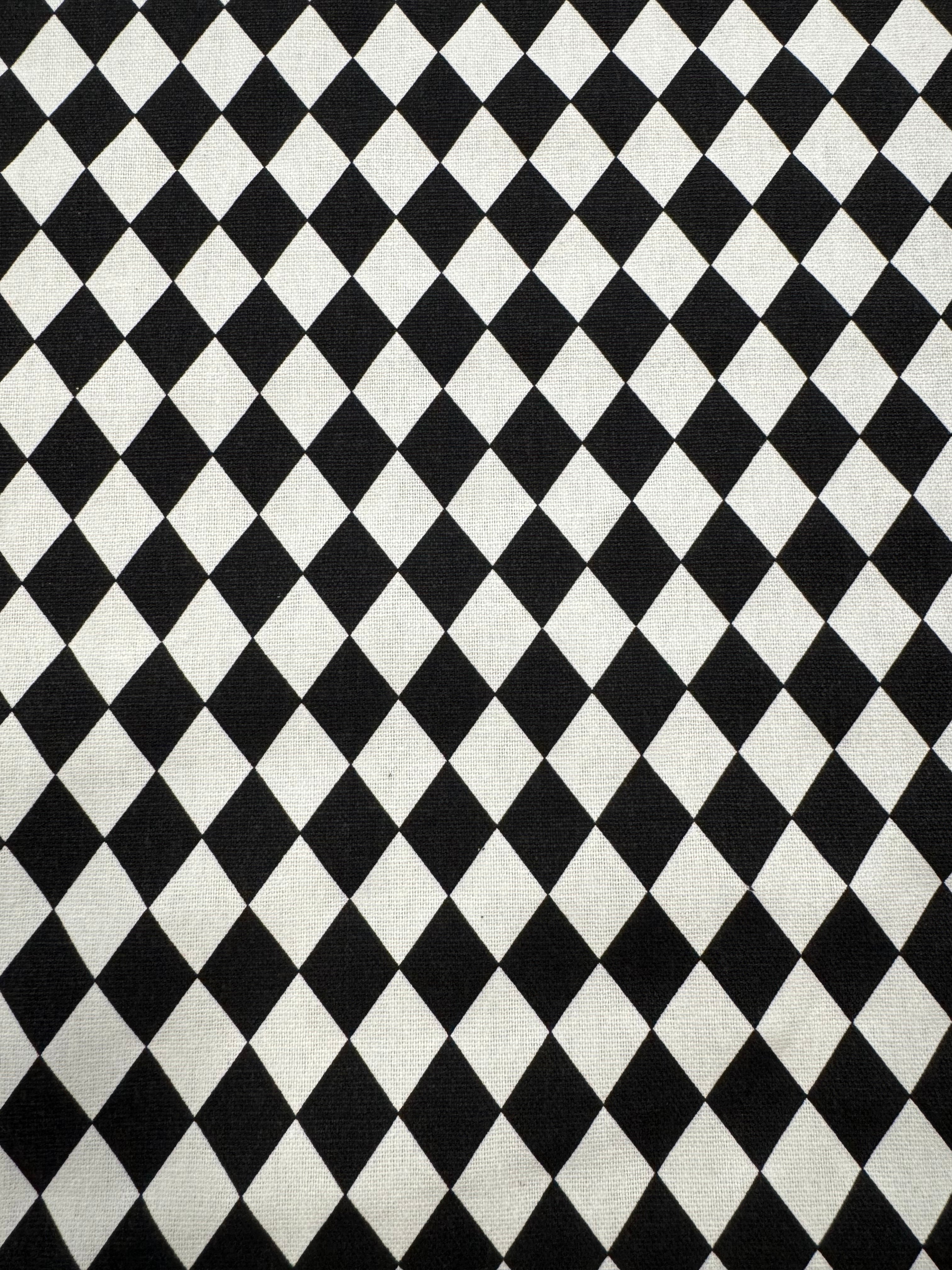 Priced per yard. Black and white diamond design. 60-inches wide. Special Purchase.
