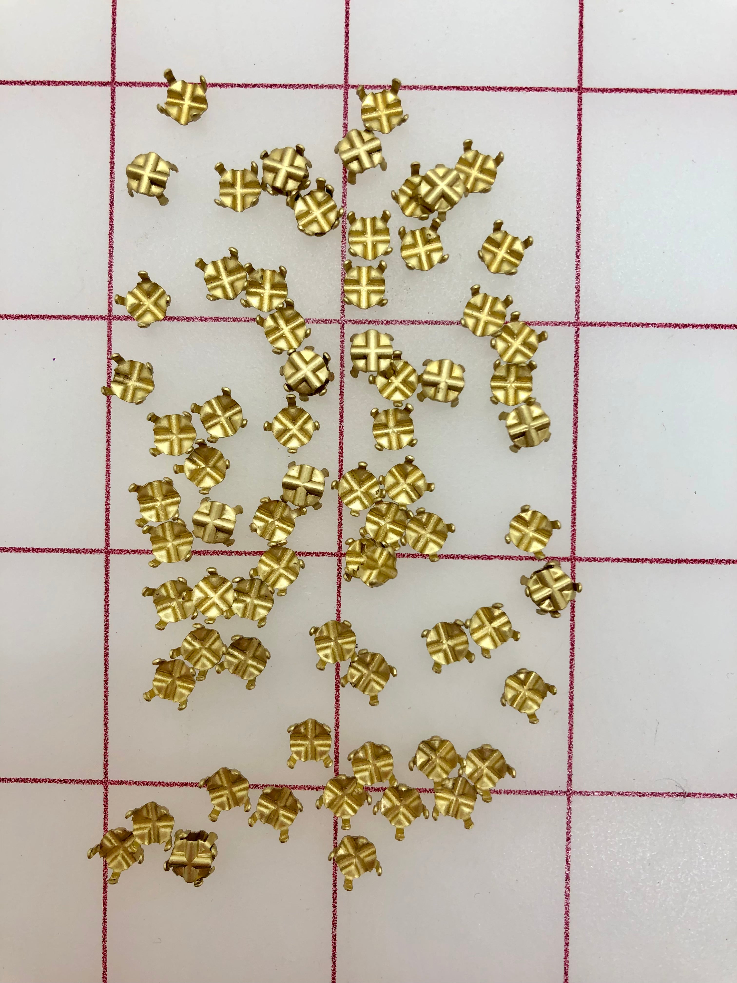 Priced per half gross (72 pieces). Un-plated brass, gold-color. Settings for 20ss Flat-Back Rhinestones.