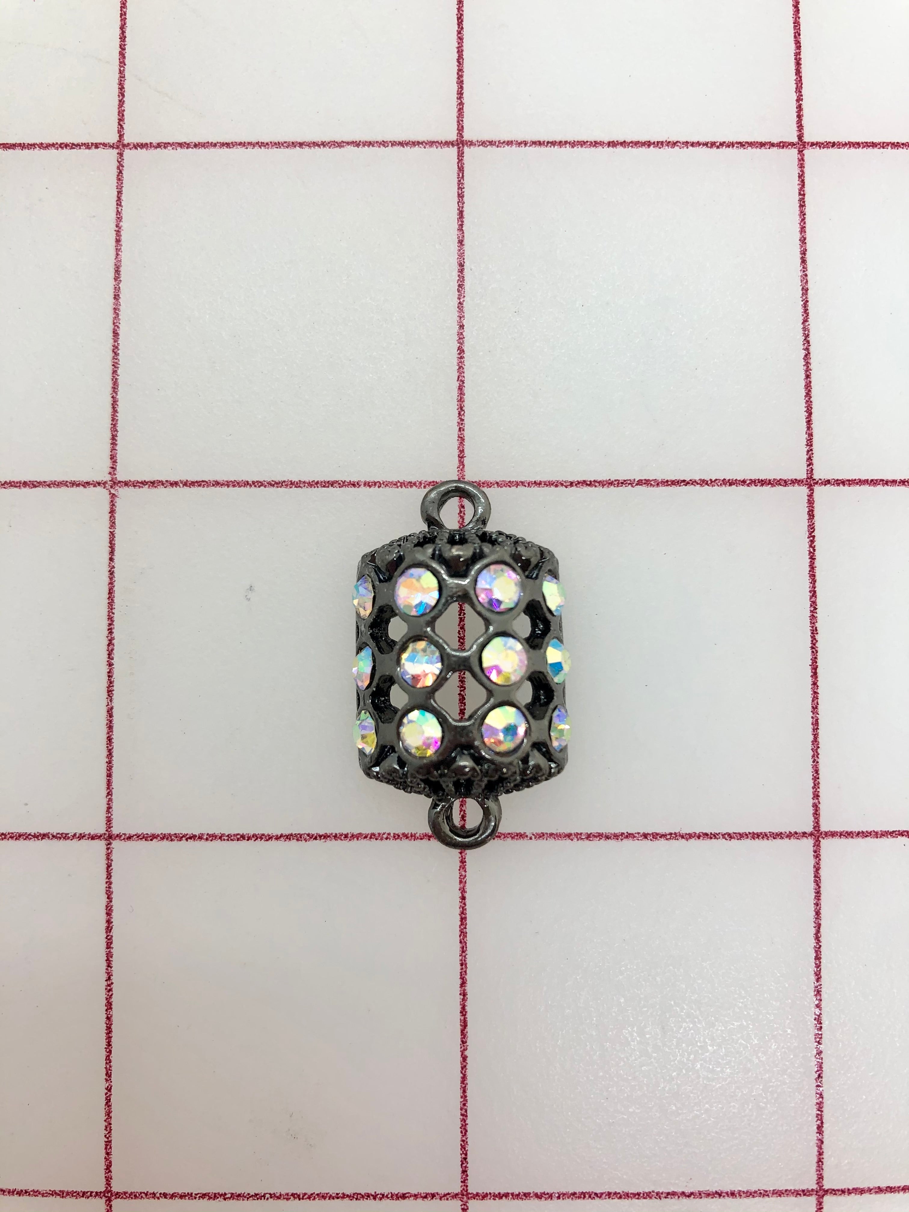 Priced per piece. AB Crystal rhinestones in metallic black setting. Two attachment holes, one on each end. Gorgeous! Can be used as a finishing touch on costumes, tiaras and other headpieces. Perfect for a center piece on a tiara. Lightweight.