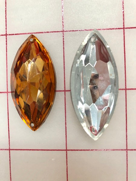 1.75-inch Dark Topaz Navette hollow-back Sew-On gems. Very lightweight. Perfect for embellishing headpieces and tutu plates and bodices. Picture shows both front and back inside of gem. 3-Pack.