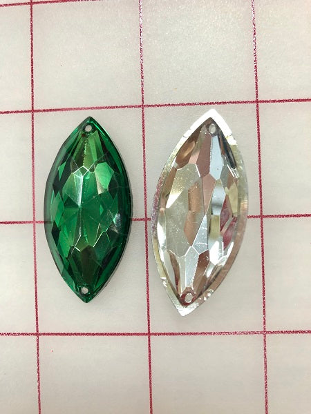 1.75-inch Navette hollow-back Sew-On gems.  Very lightweight.  Perfect for embellishing headpieces and tutu plates and bodices.  Picture shows both front and back inside of gem.  3-Pack.