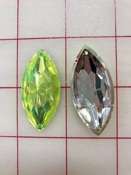 1.75-inch Navette hollow-back Sew-On gems. Very lightweight. Perfect for embellishing headpieces and tutu plates and bodices. Picture shows both front and back inside of gem. 3-Pack.