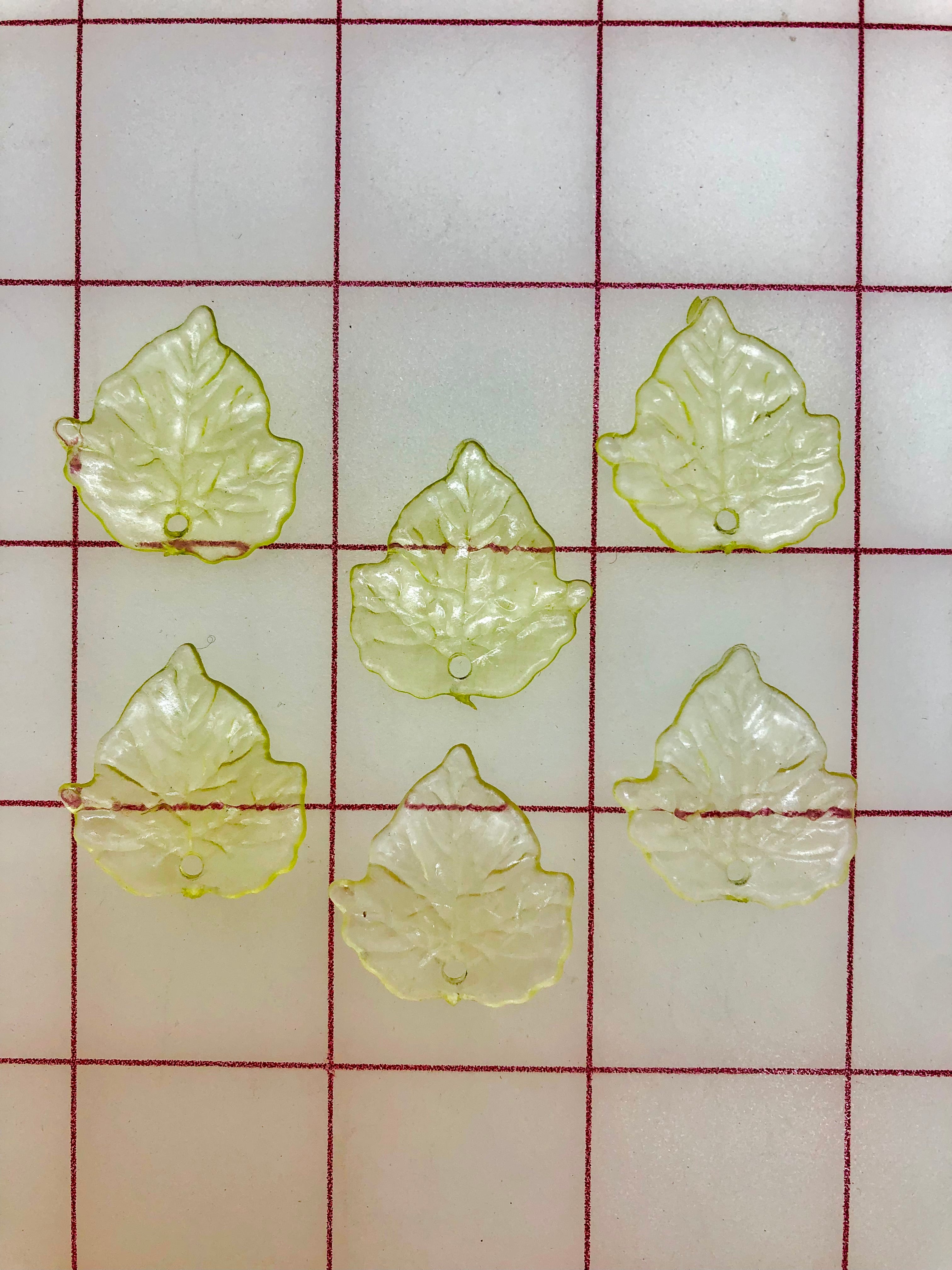 Priced per 6-pack. .75-inch leaf design acrylic sew-on gems. Very lightweight. Perfect for embellishing headpieces and tutu plates and bodices.