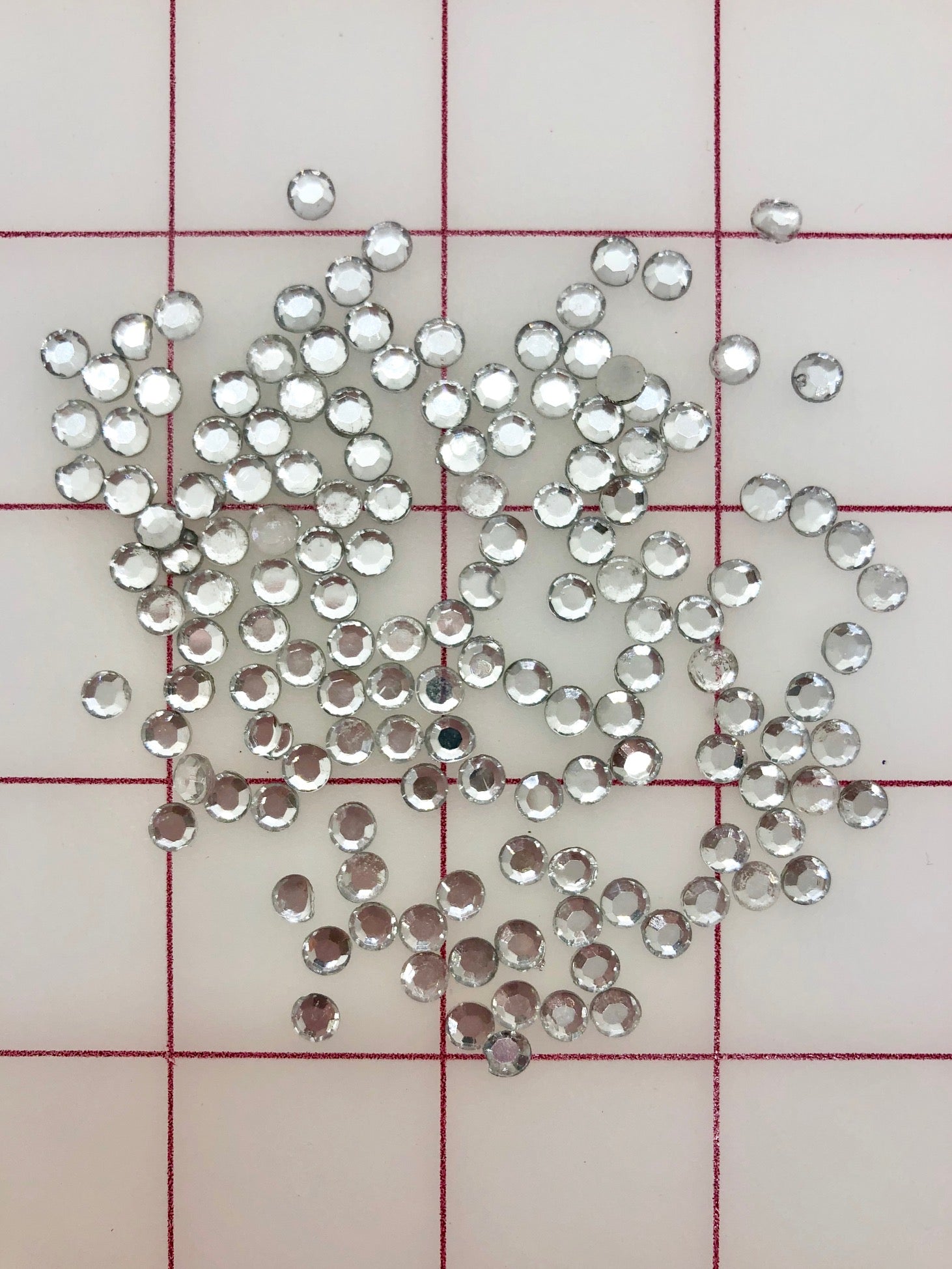 Priced per gross. 20ss assorted glass flat-back rhinestones. Most of these rhinestones are foiled back and very shiny. There are some unfoiled and a few hot fix mixed in - they came in this way. That is why they are a close-out sale. Discounts for 5-gross(10%) and 10-gross(20%). The price is great! Perfect for embellishing headpieces and tutu plates and bodices, and other costumes. Easy to glue on.