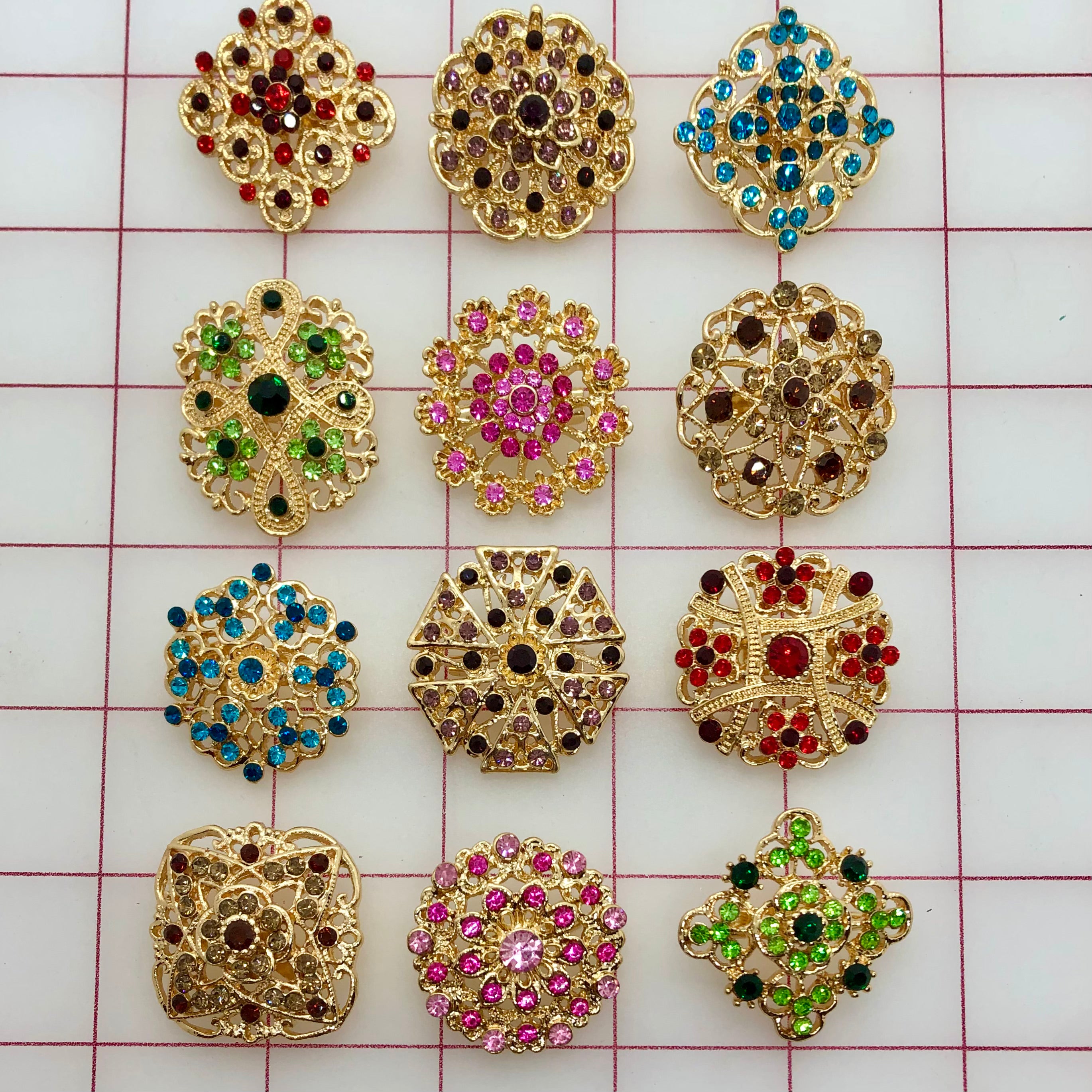 Priced per piece. Beautiful, vintage rhinestone brooches. Very lightweight. Twelve different designs.
