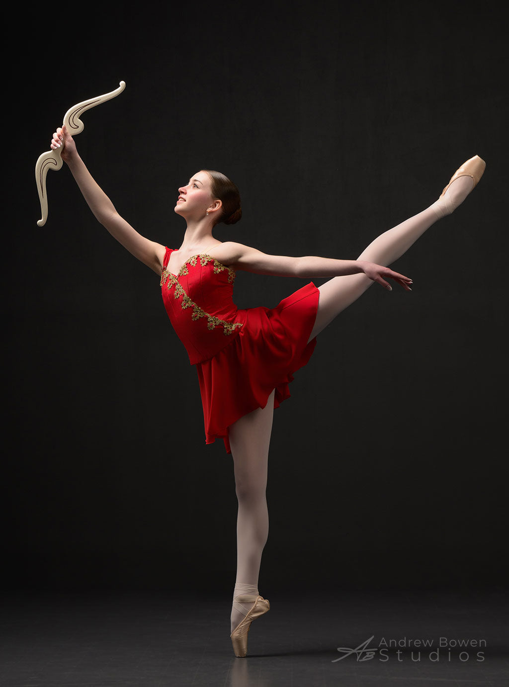 Priced per piece. Handmade "Diana" bow perfect for Diana and Actaeon ballet variation Lightweight painted wood. White with gold painted embellishment.