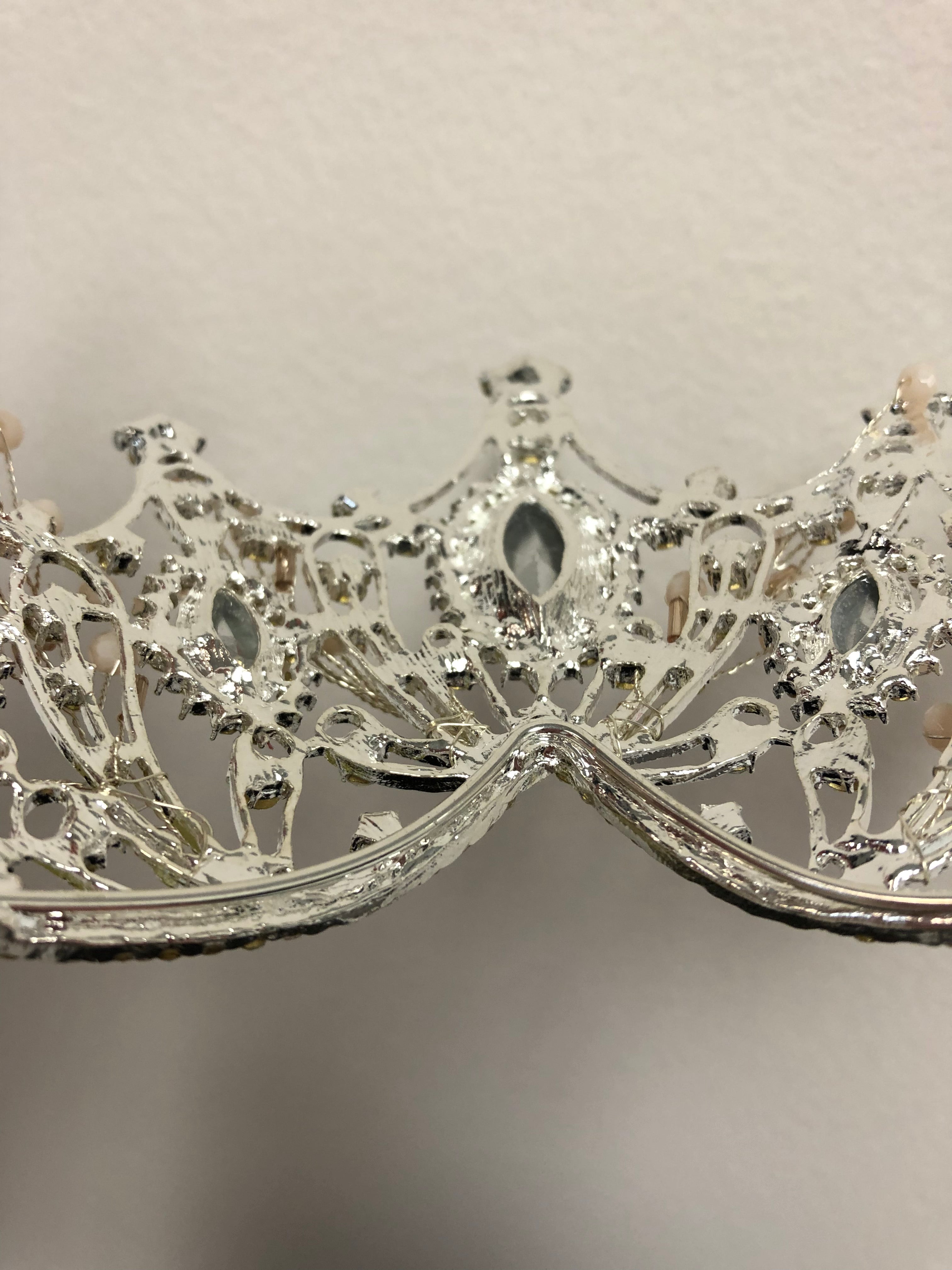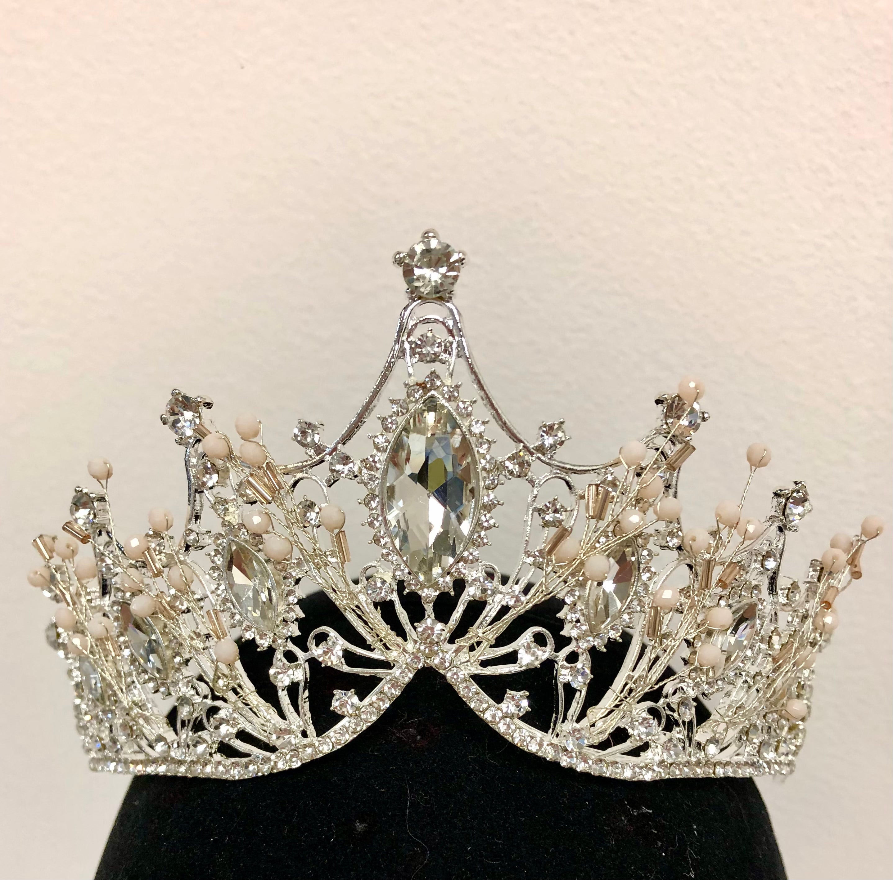 Priced per each. Elegant silver tiara with pale pink beads and crystal rhinestone tiara. Perfect for many ballet roles.