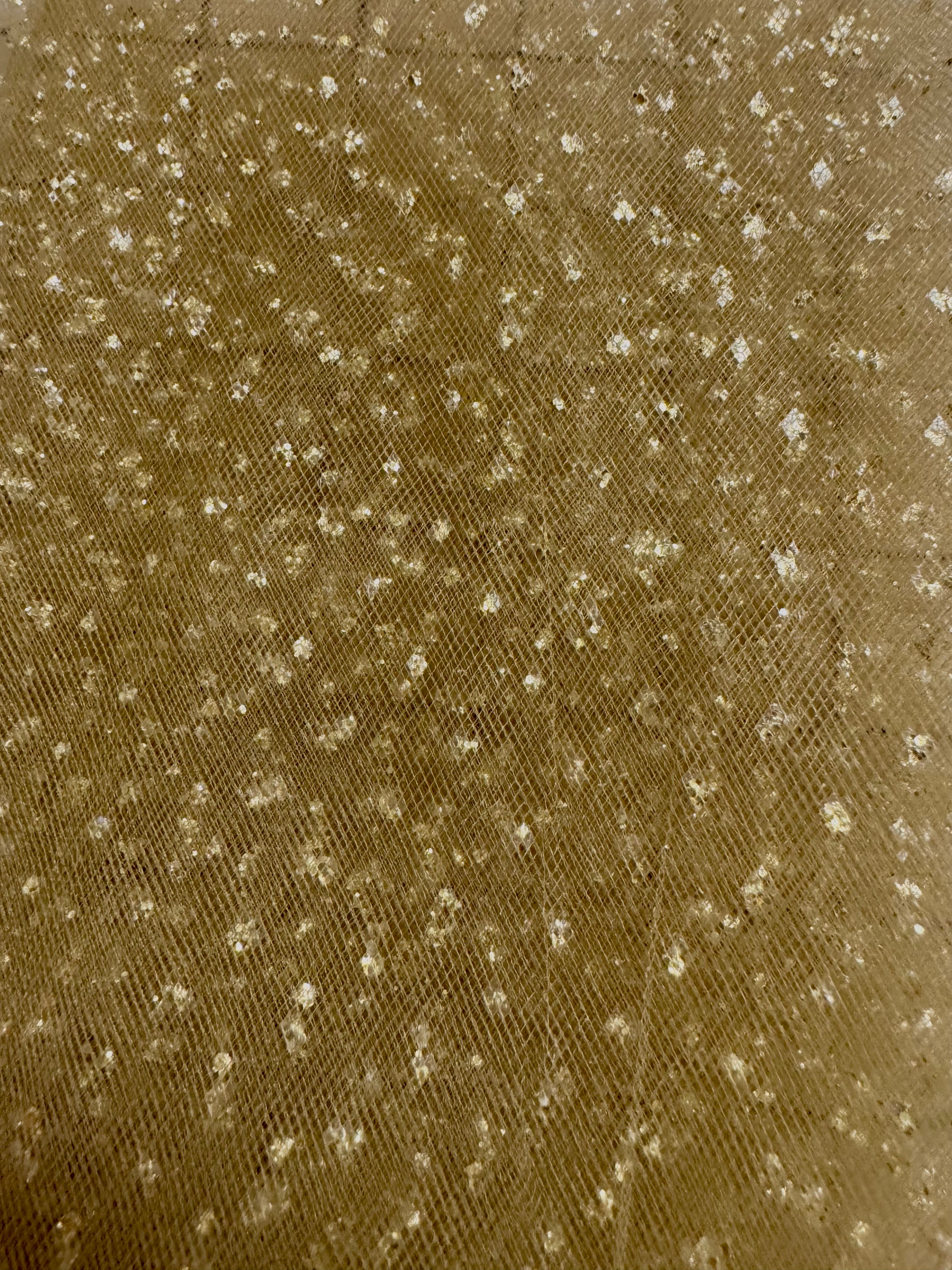 Priced per yard. Antique Gold/Gold, enhanced sparkle tulle. 54-inches wide.