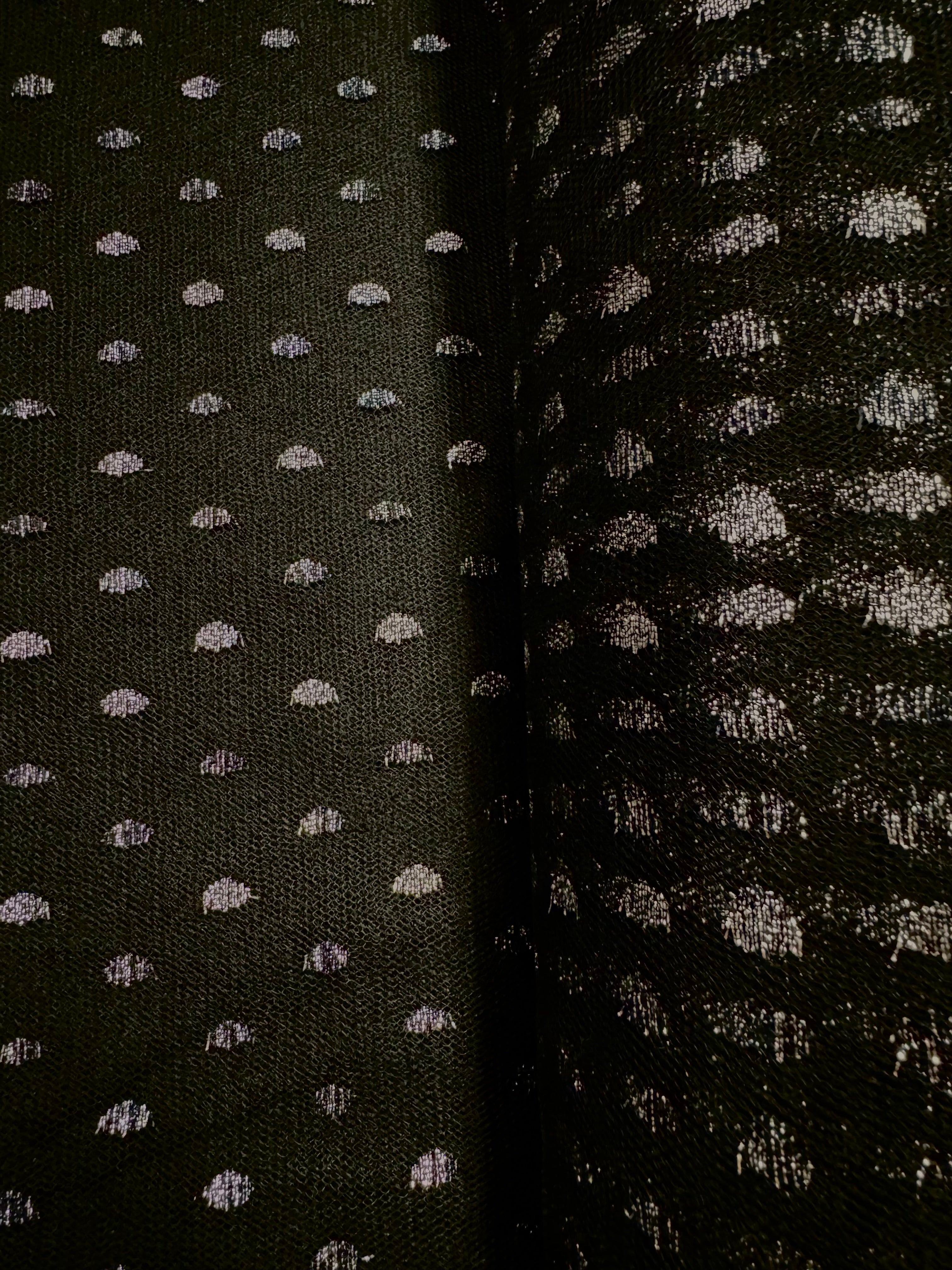 Blacktullw w/silver ovals, enhanced sparkle tulle. 54-inches wide. This color mixes well with all black, white, ivory, champagne, beige, red, pink, purple, blue tulles and nets.