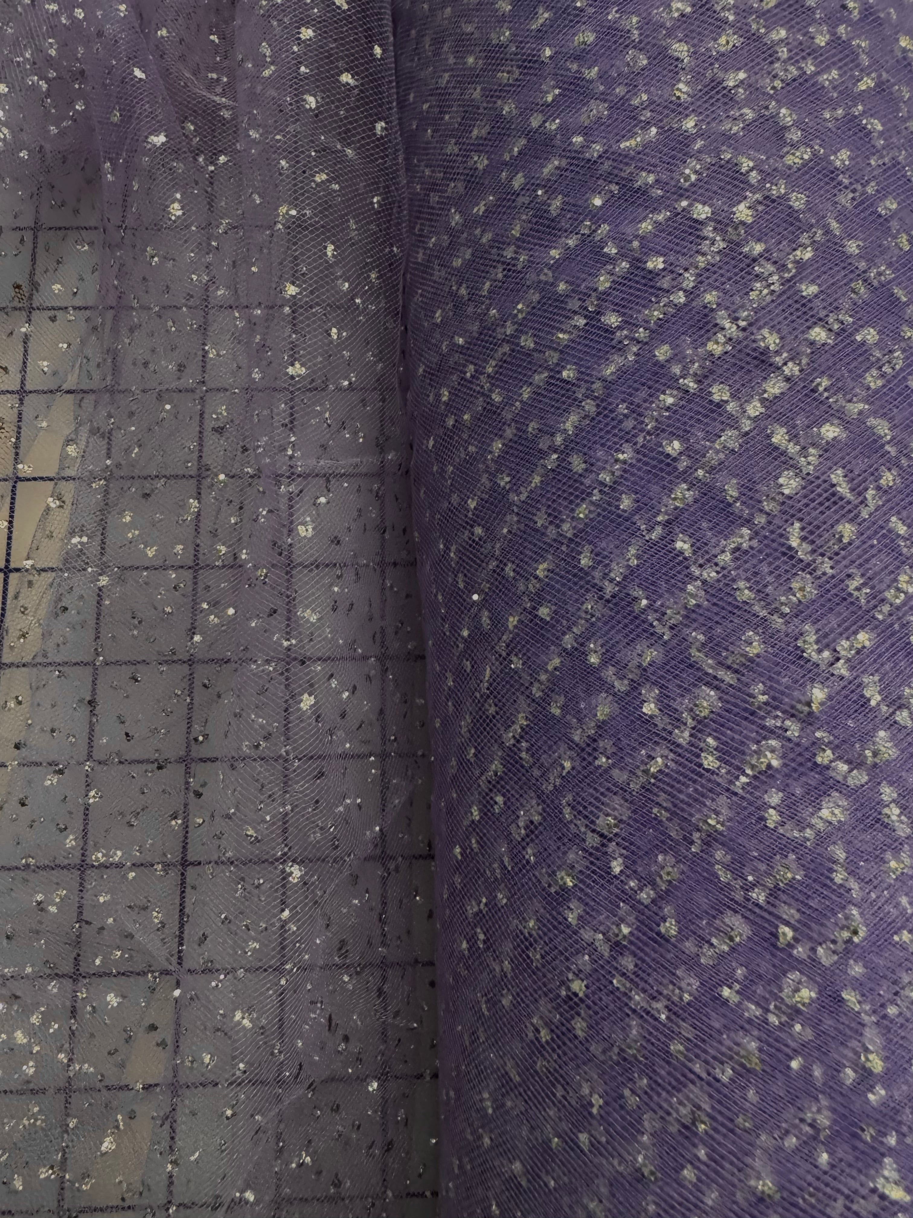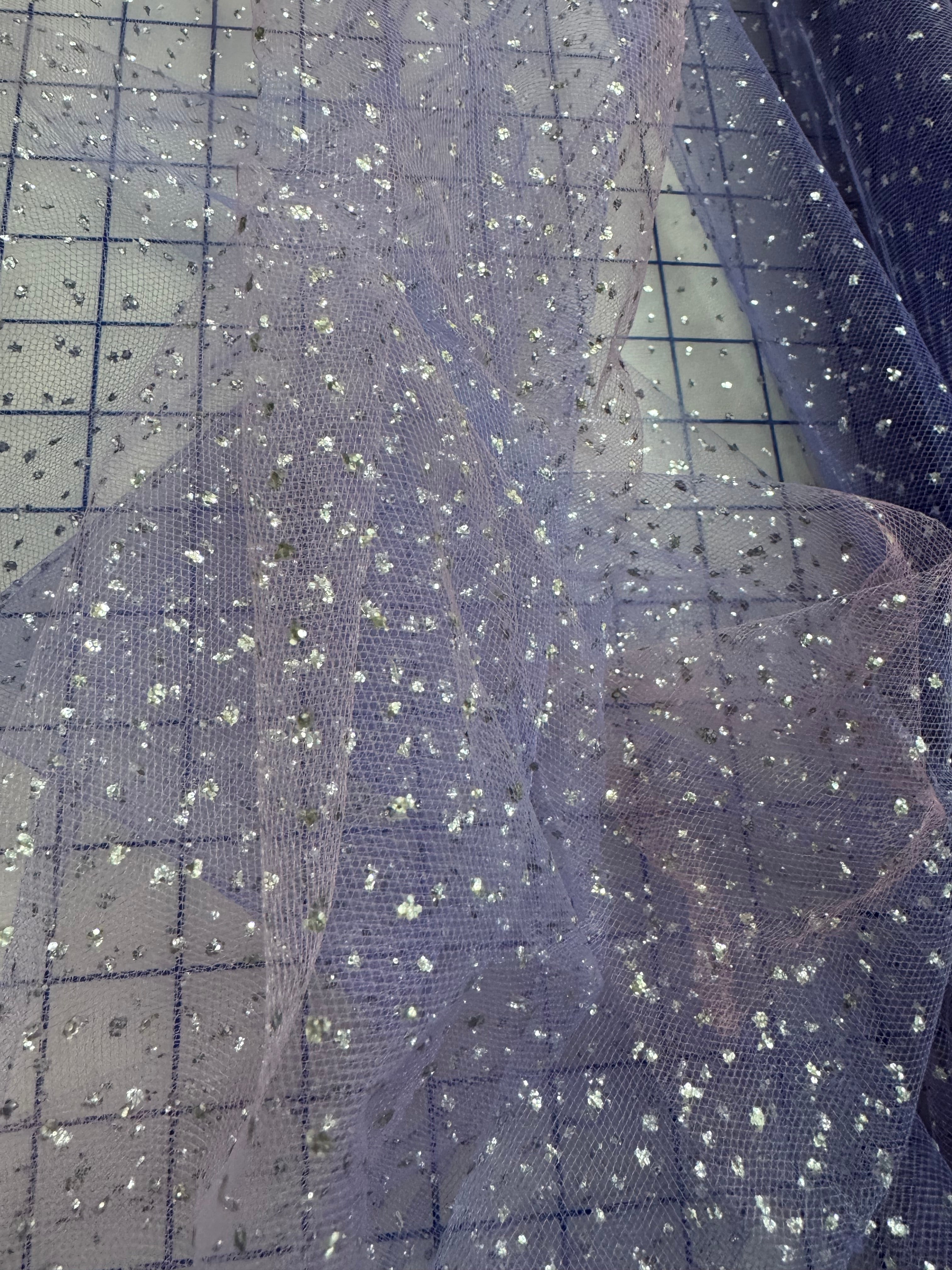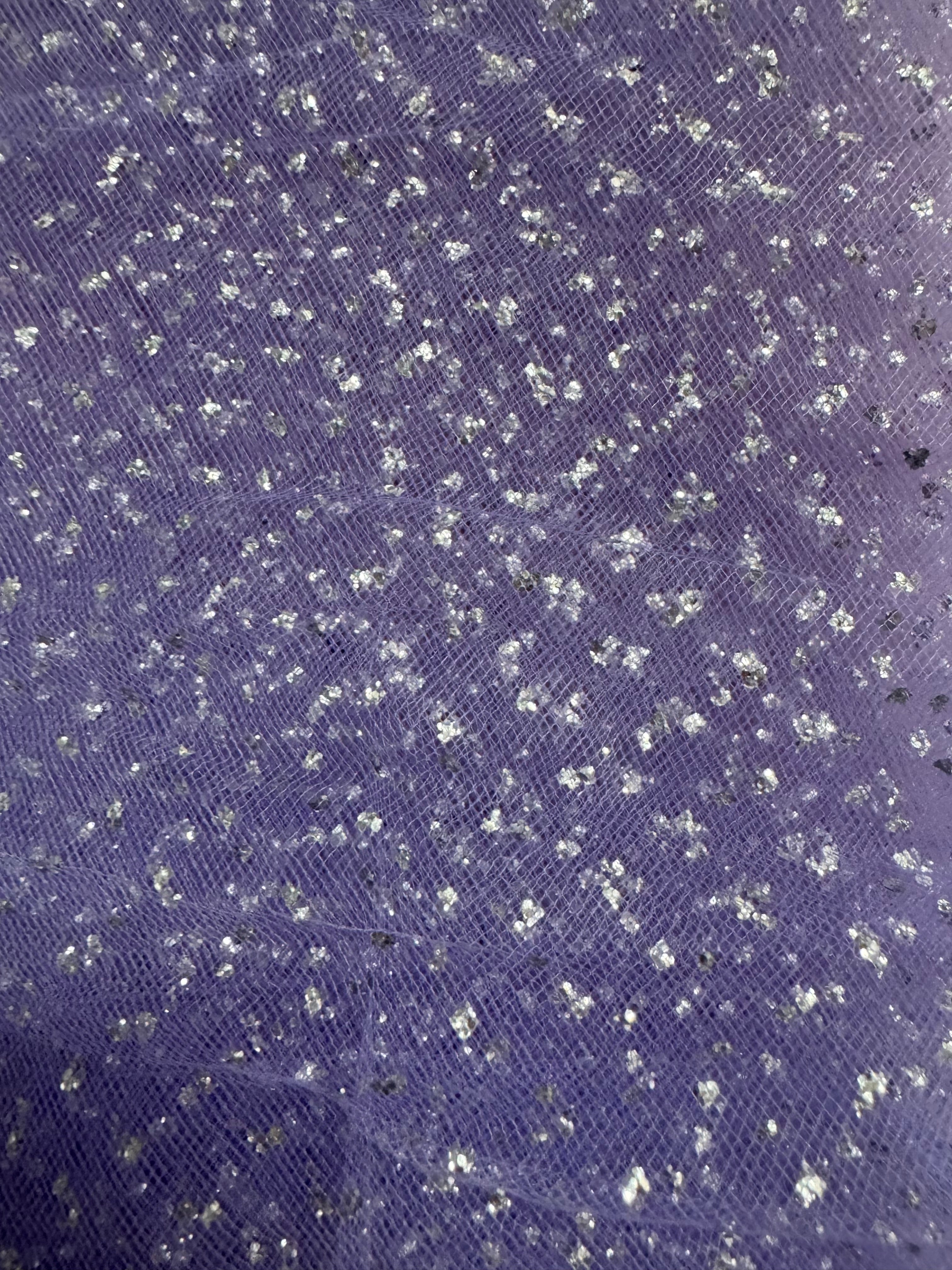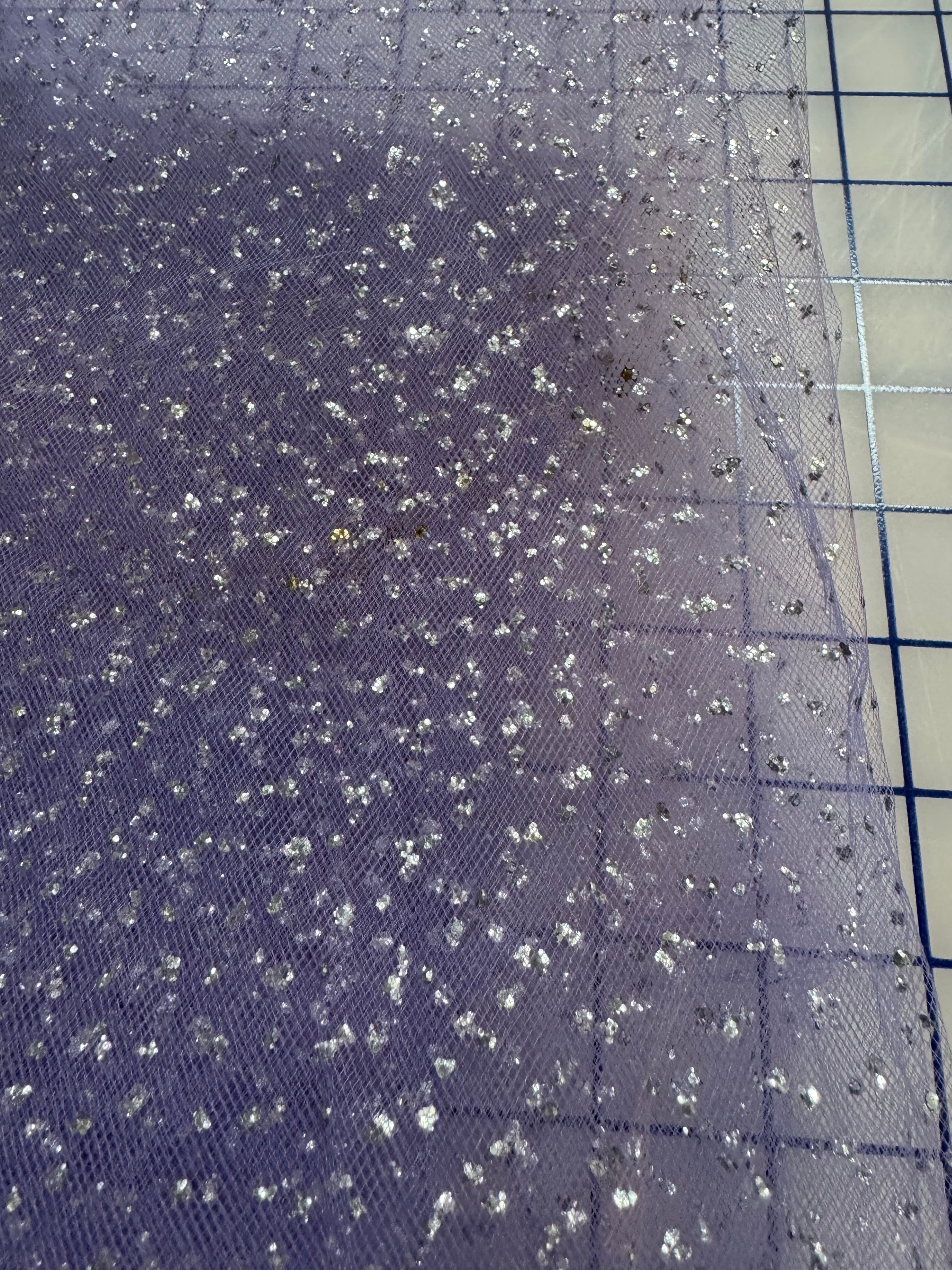 Priced per yard. Lavender/Silver, enhanced sparkle tulle. 54-inches wide.