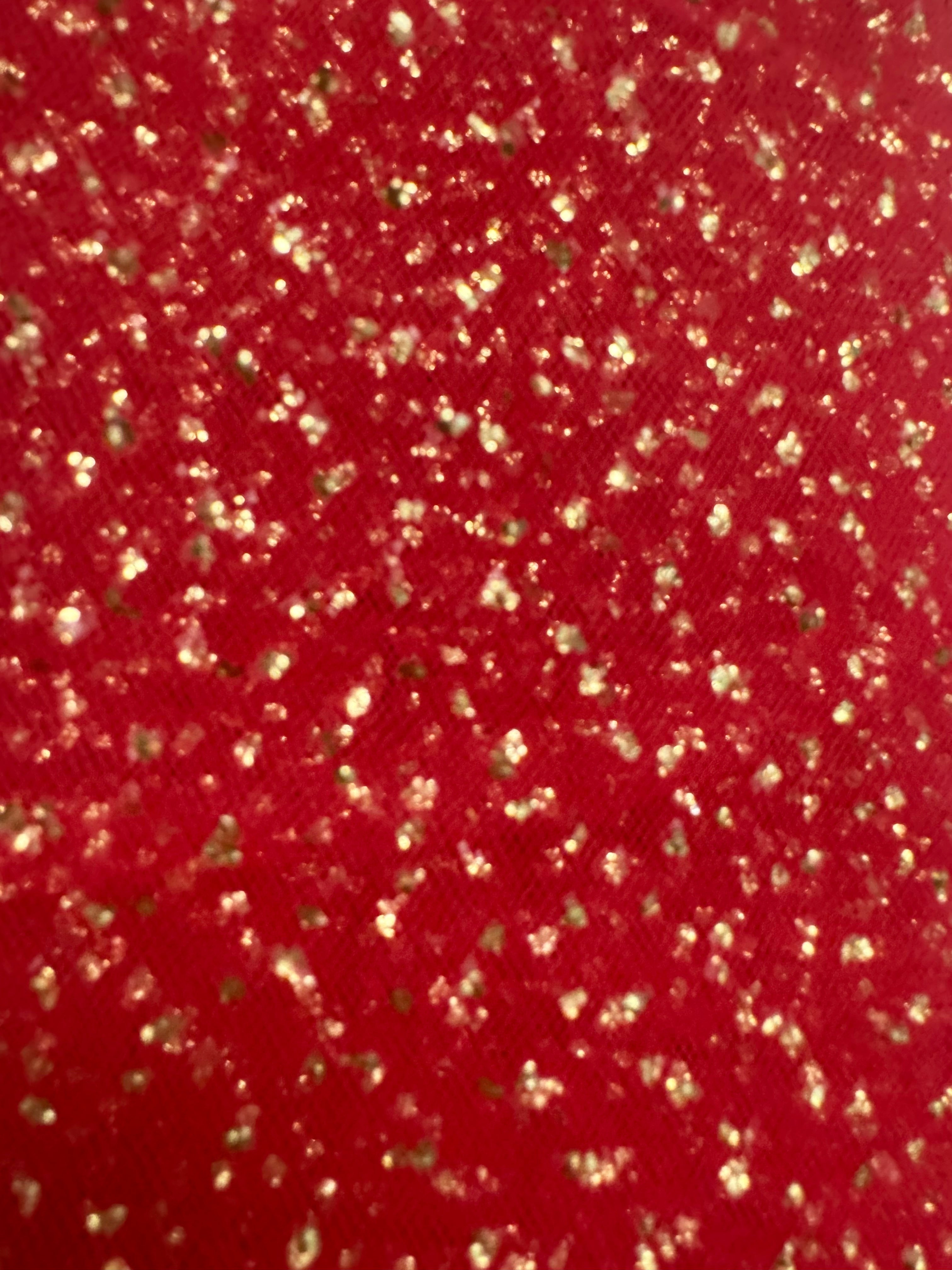 Priced per yard. Red/gold, enhanced sparkle tulle. 54-inches wide.